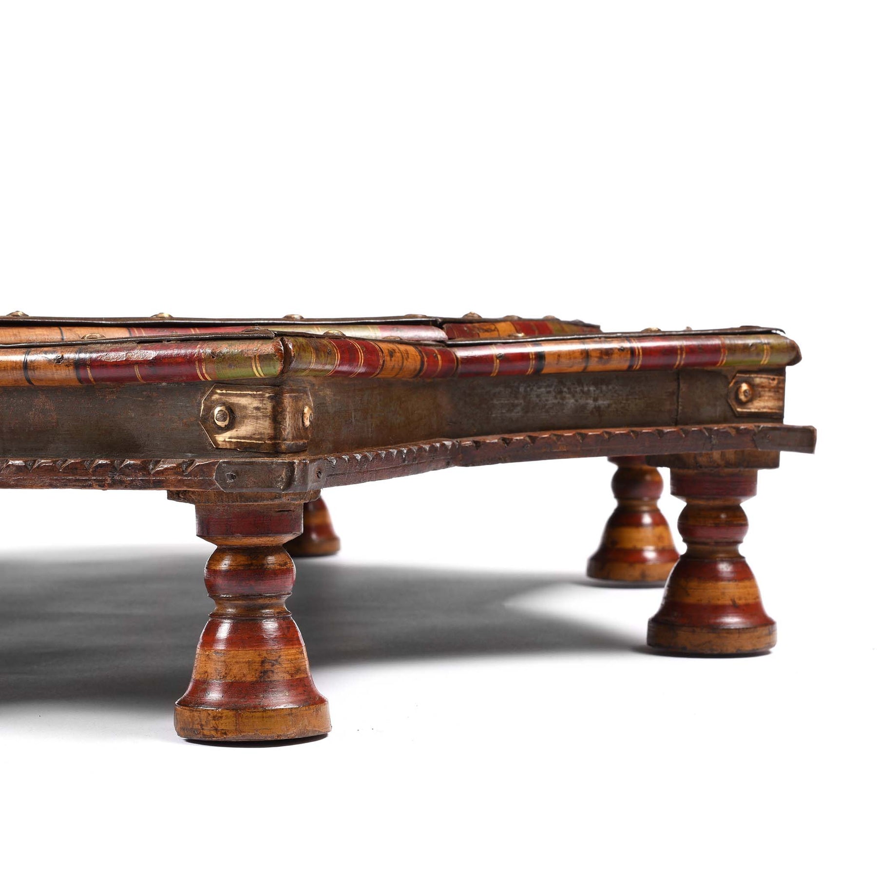 Detail From Octagonal Bajot Low Prayer Table From Rajasthan - 19thC
