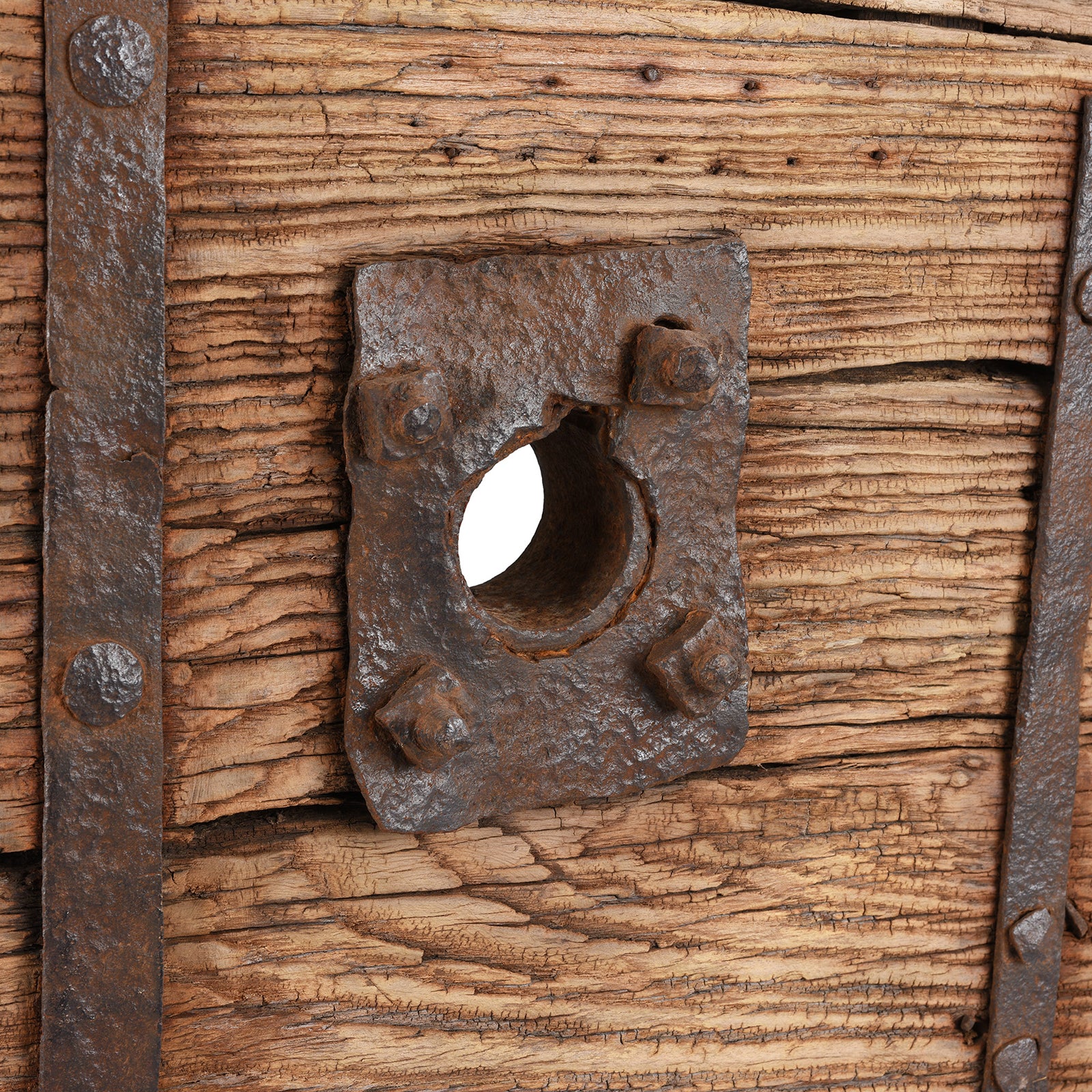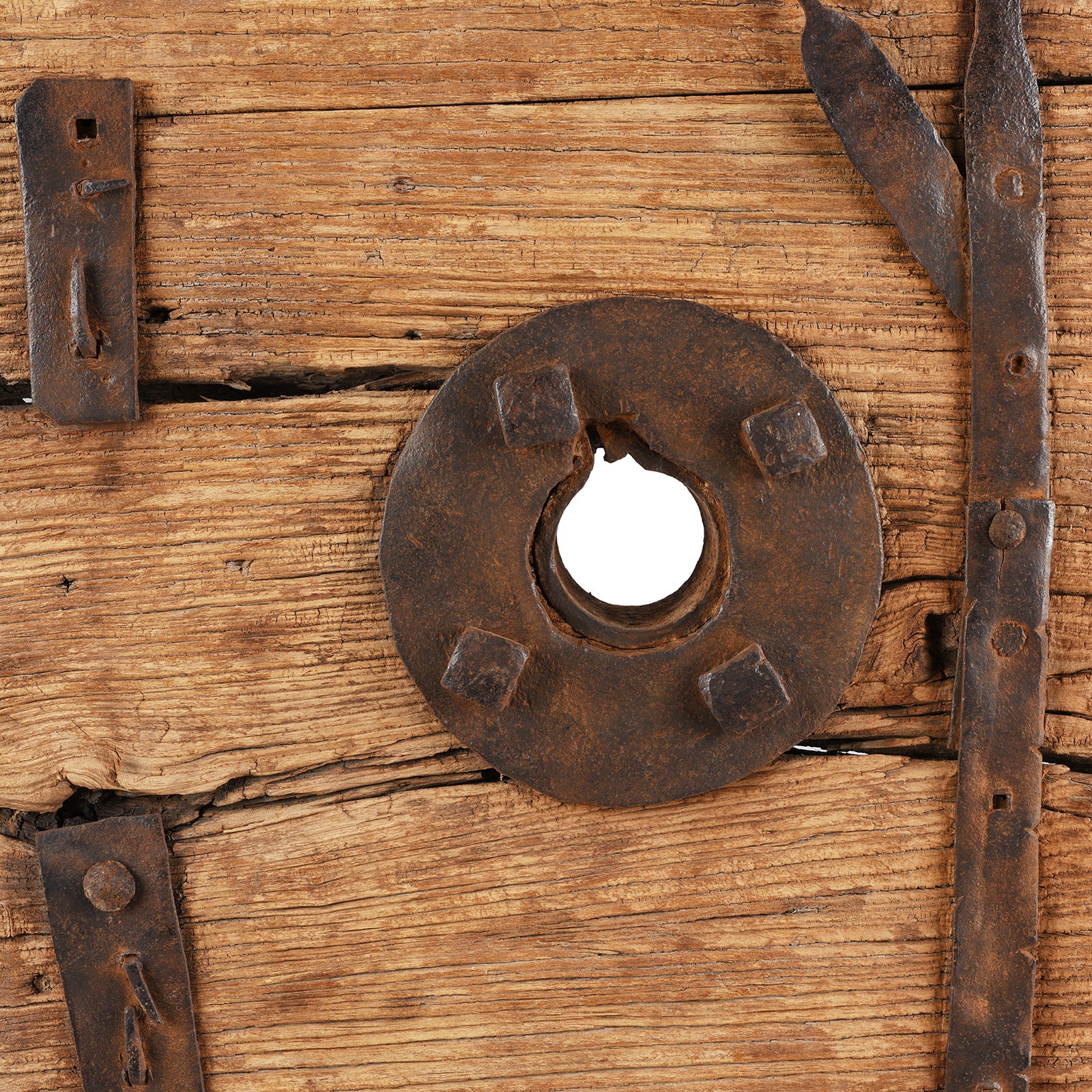 Metalwork Detail From Antique Elm Wheel On Stand From Shanxi | Indigo Antiques