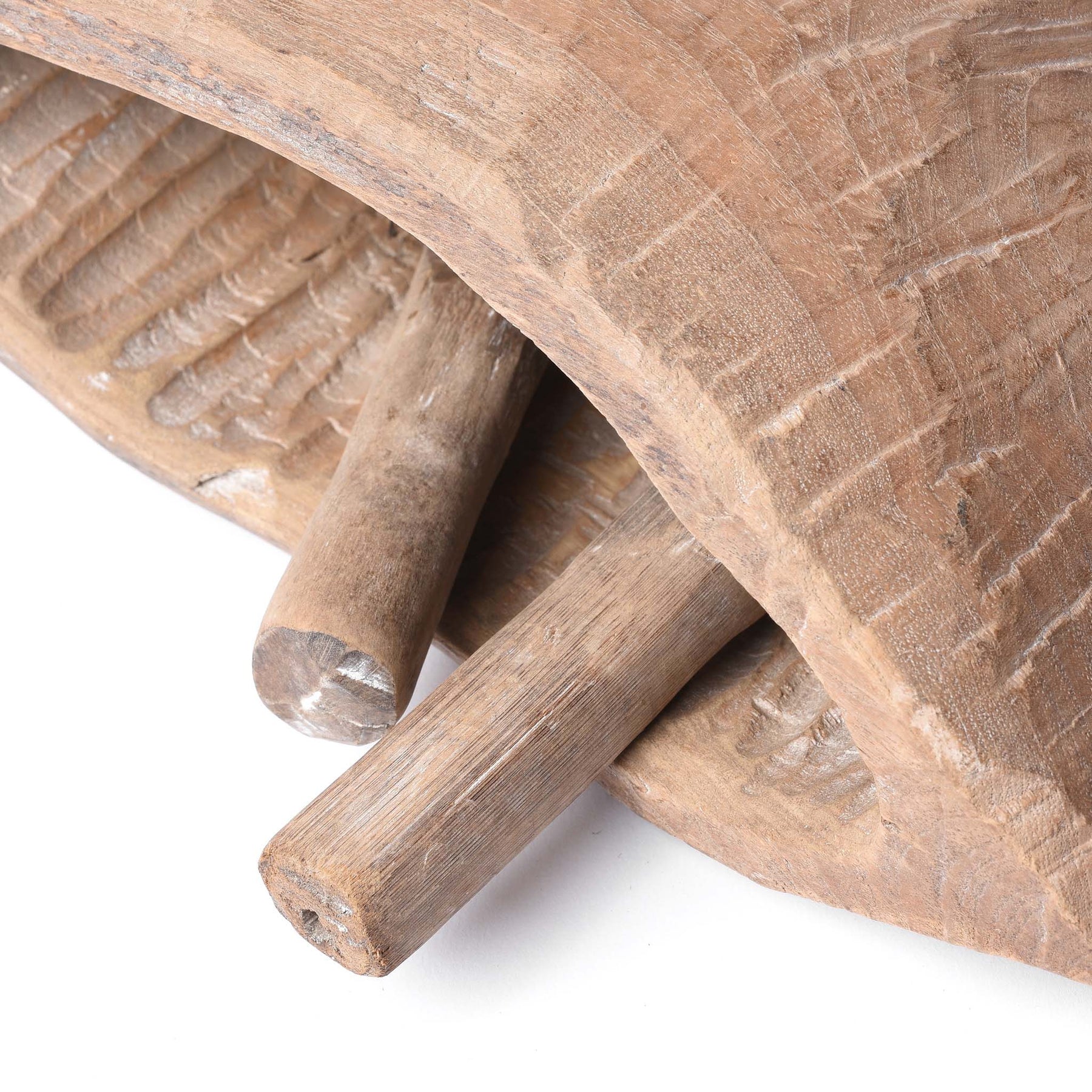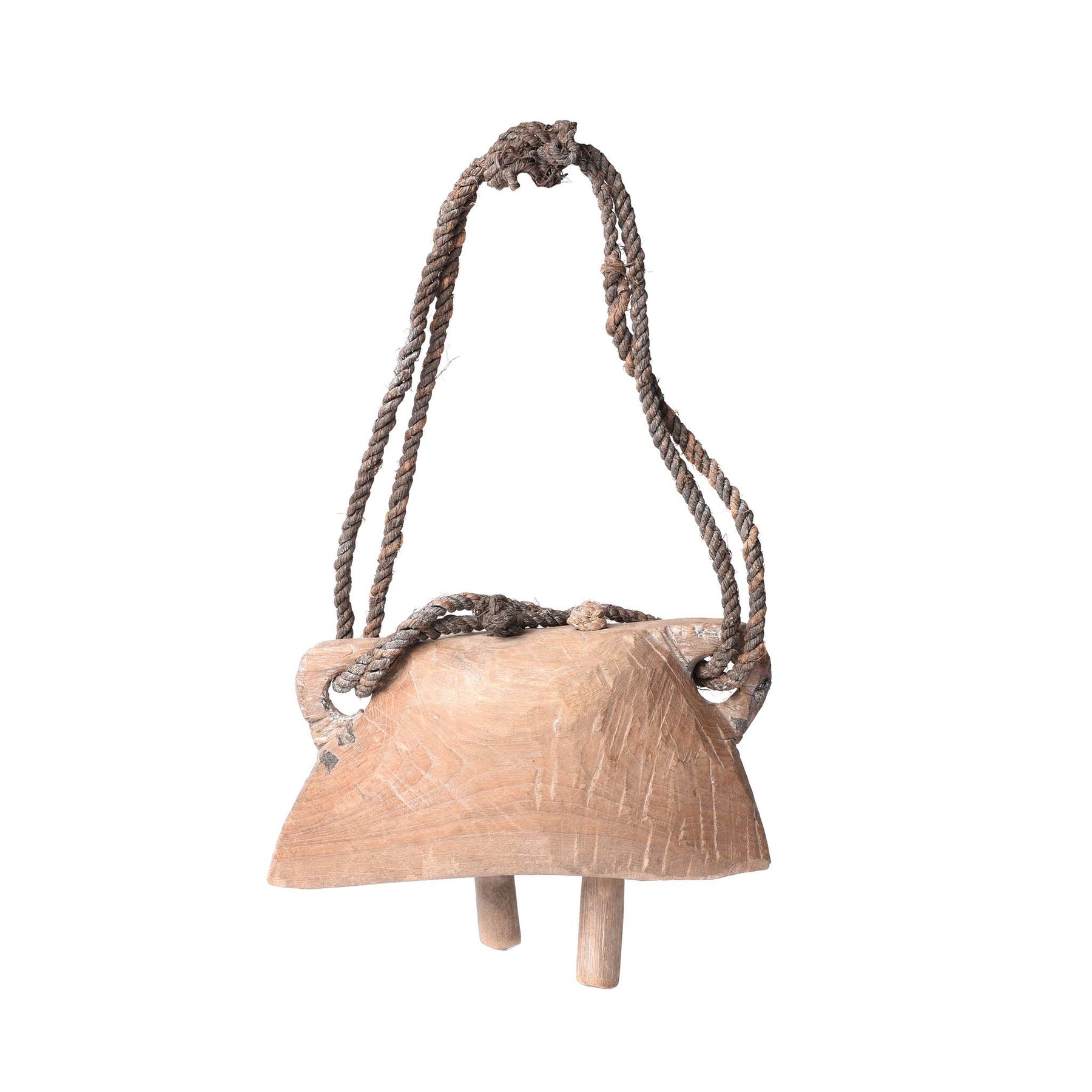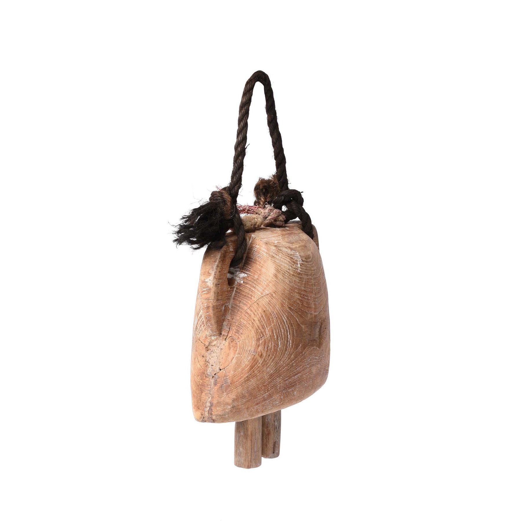 An old carved teak cow bell from Rajasthan. Wooden bells were used by Rajasthani herders and farmers for cows, goats and camels depending on the size. Carved from a single piece of wood.
