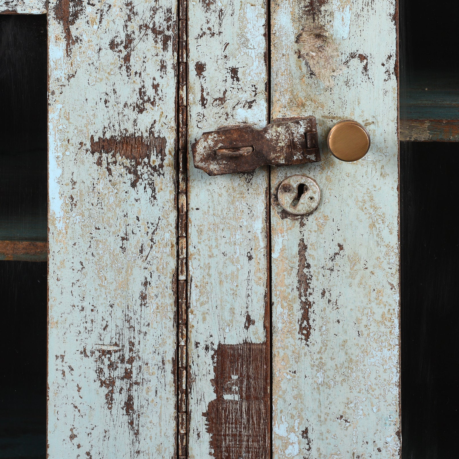 This vintage sideboard features the original aged blue paint dating from 1930's, this gives the unit a true vintage feel. It has been refurbished with a green marble top to make it more functional in today's society, with two shelf compartments and two draws, it would look great in a kitchen or bathroom.