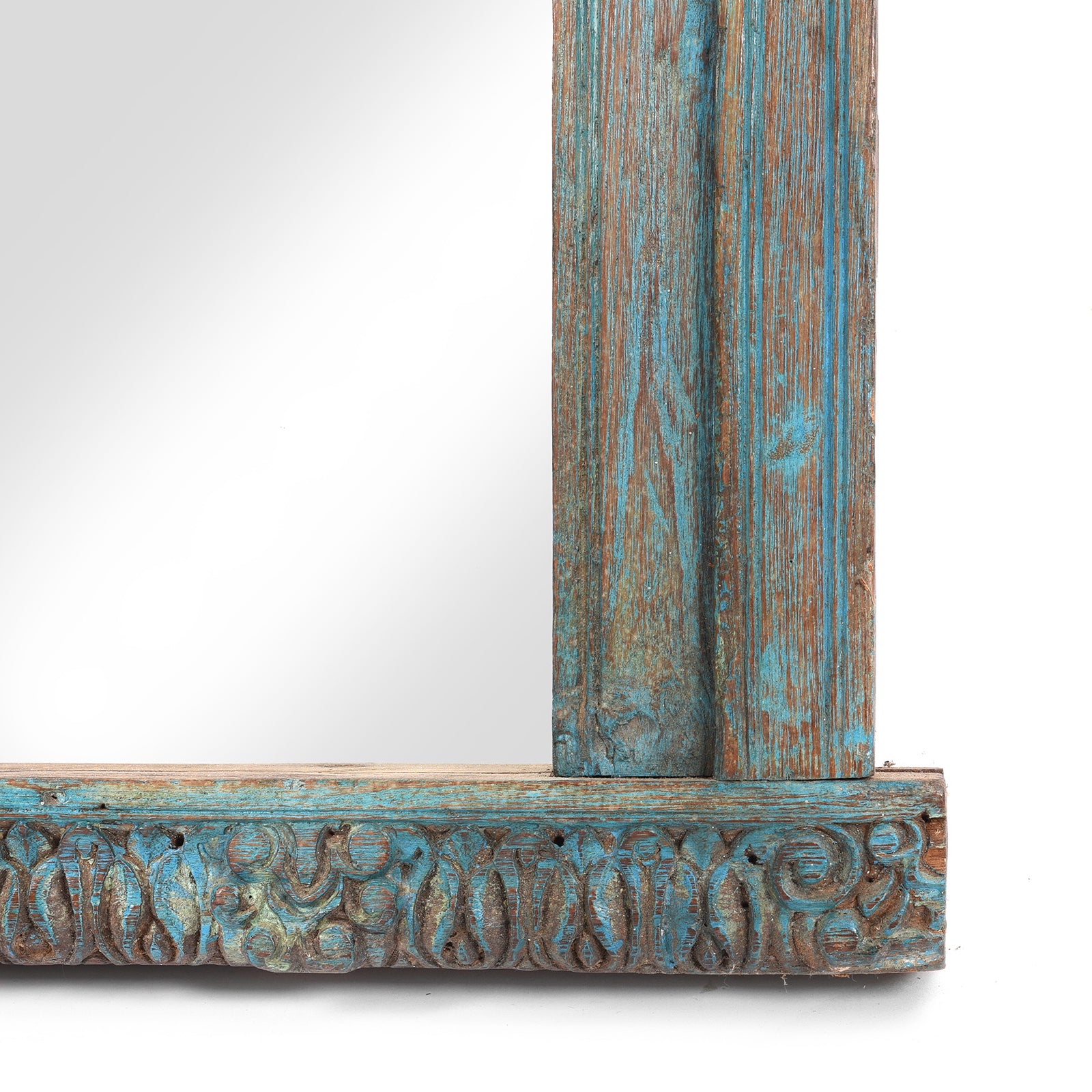 Corner Detail of an Old Blue Painted Indian Window Mirror From Banswara - 19thC | Indigo Antiques