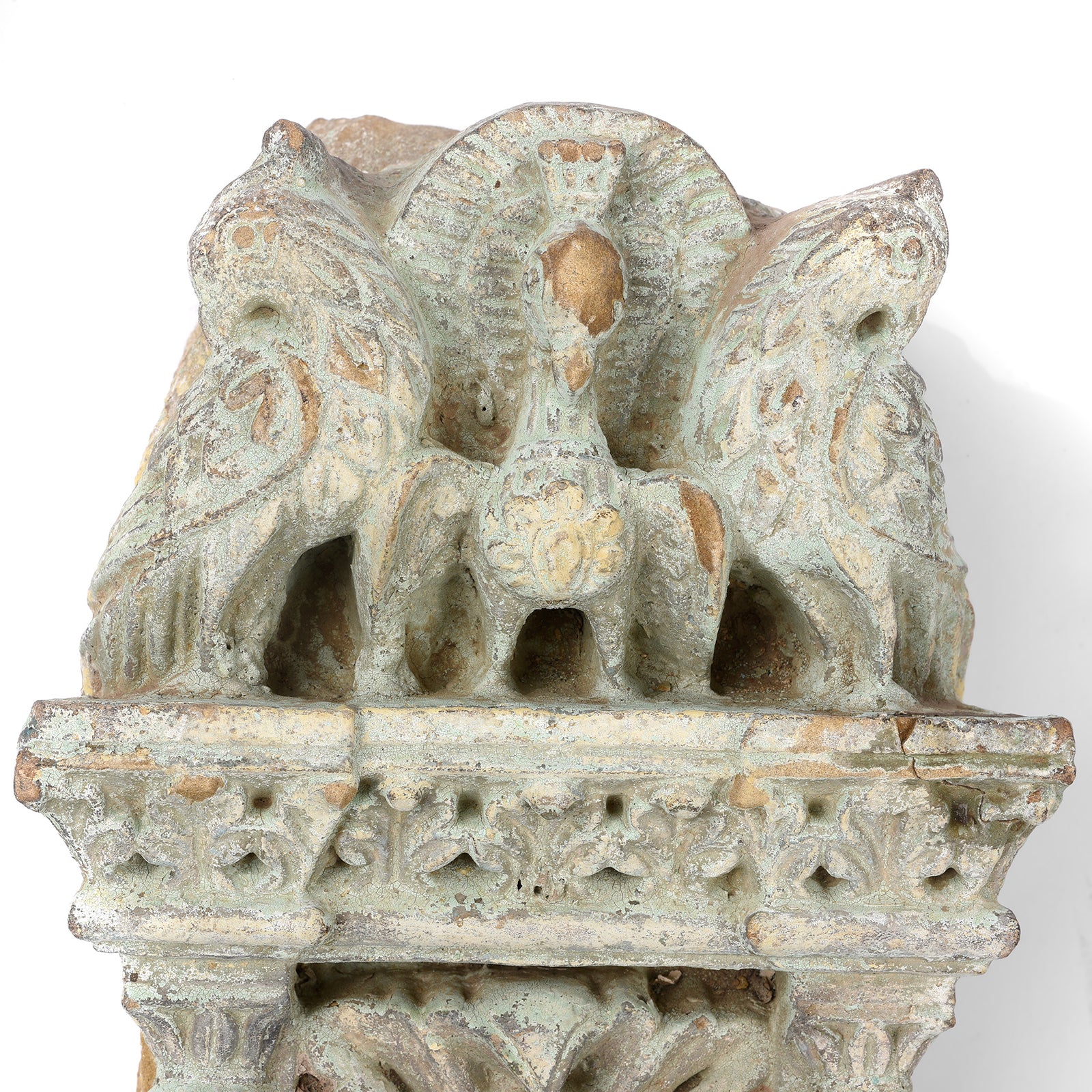 Peacock Detail From Antique Old Stone Lamp Niche From Gujarat - 19th Century | Indigo Antiques