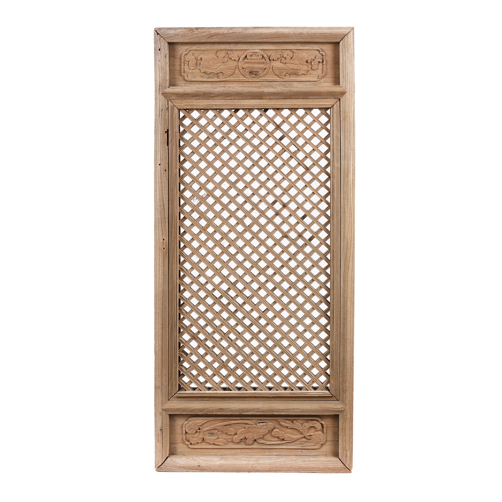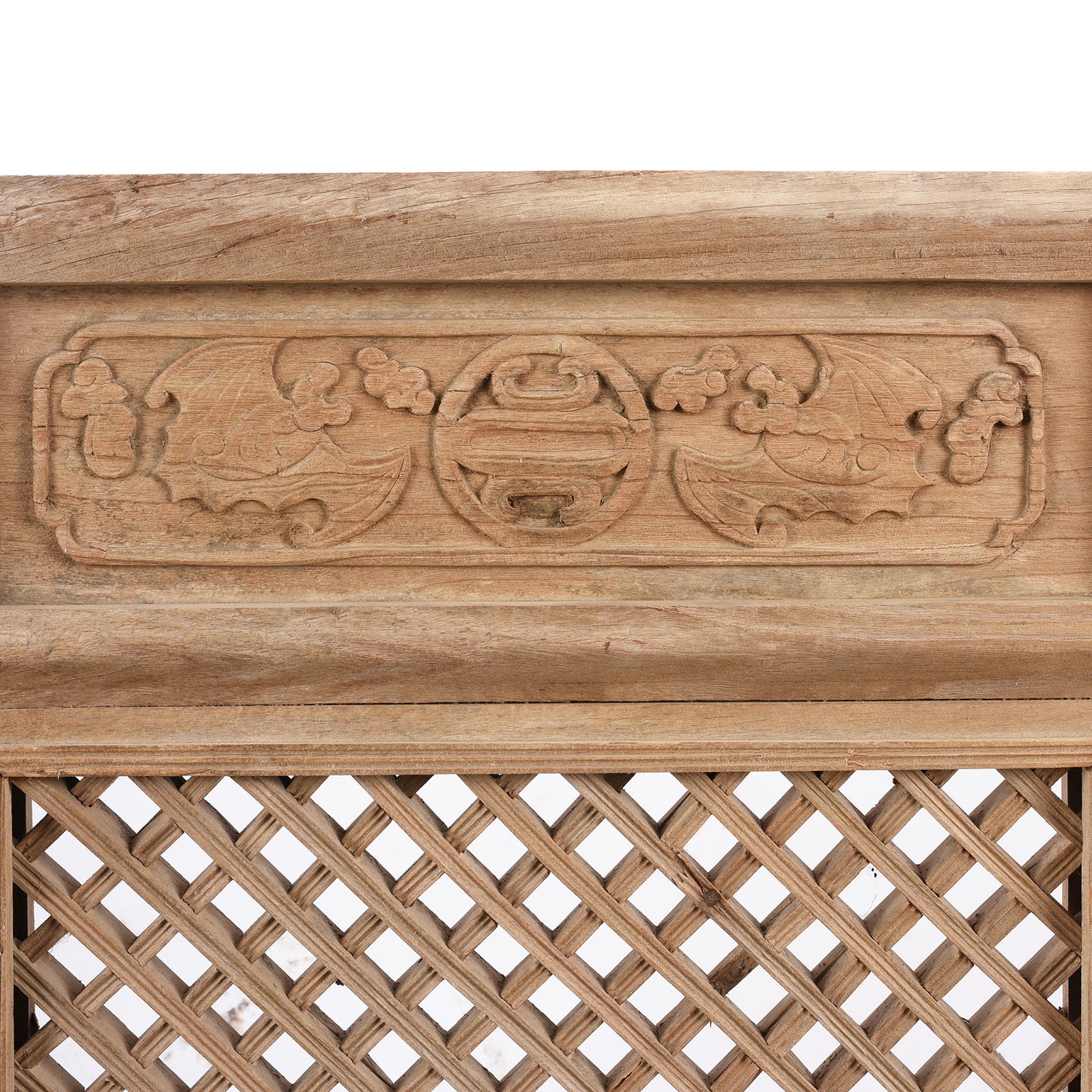 This decorative antique Chinese screen window is from an inner courtyard dating from the 19th century. It is built from yumu (Chinese northern elm wood). These antique windows would have come from a home in Shanxi, Northern China - Qing dynasty (1644-1911)