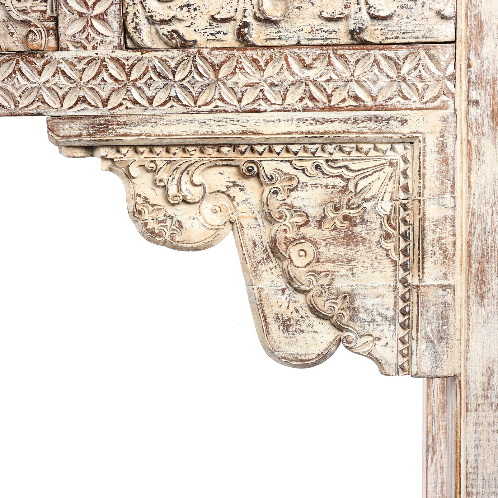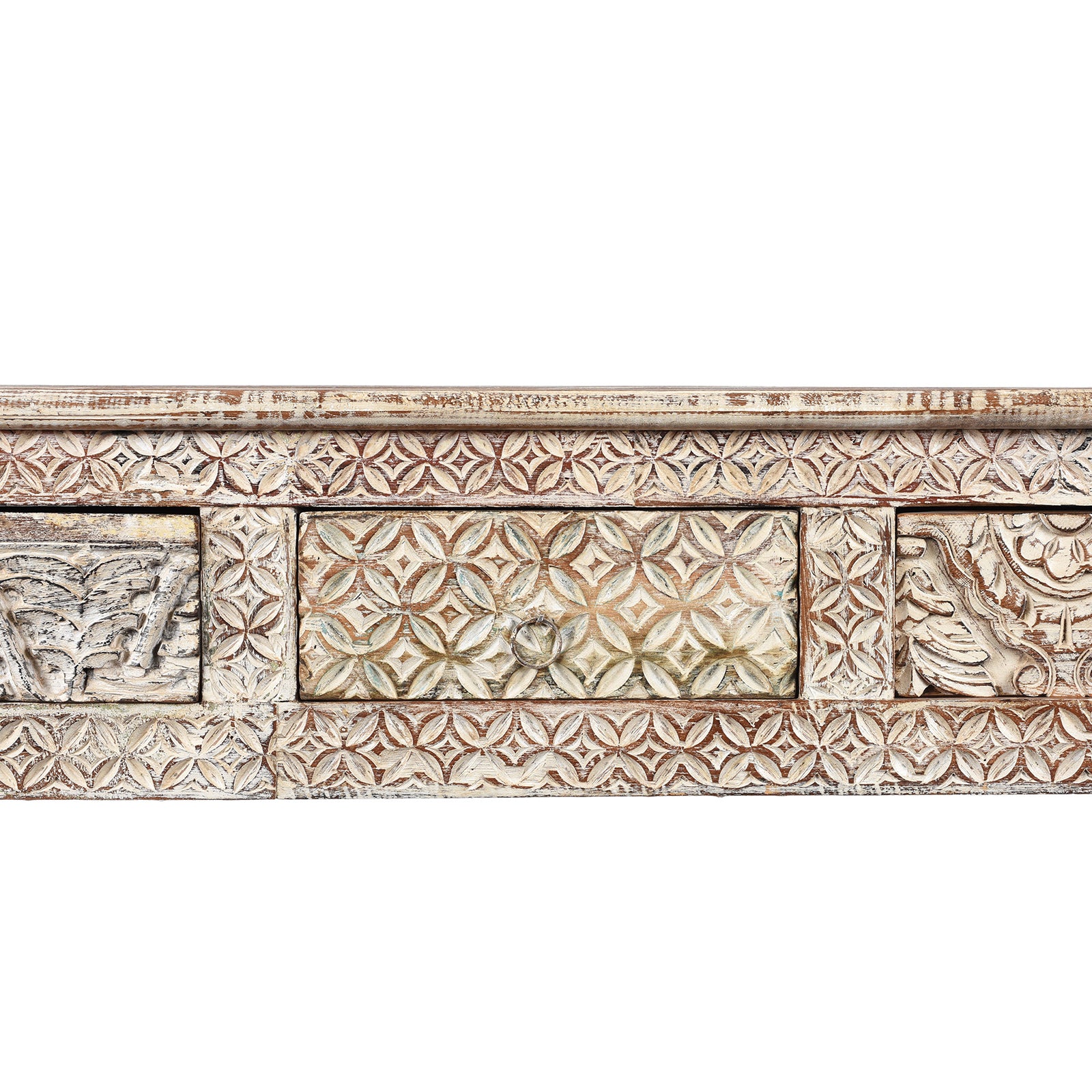 Carving Detail From Painted 5 Drawer Console Table Made From Reclaimed Teak | Indigo Antiques