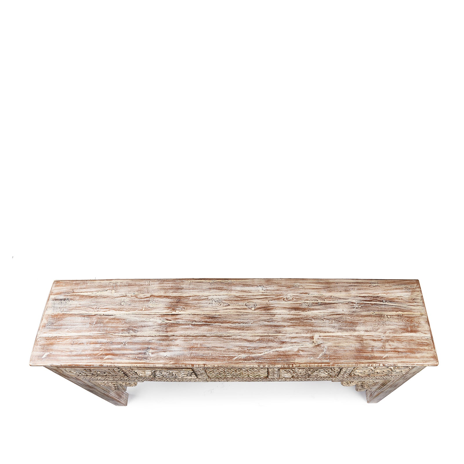 Top Down View Of Painted 5 Drawer Console Table Made From Reclaimed Teak | Indigo Antiques