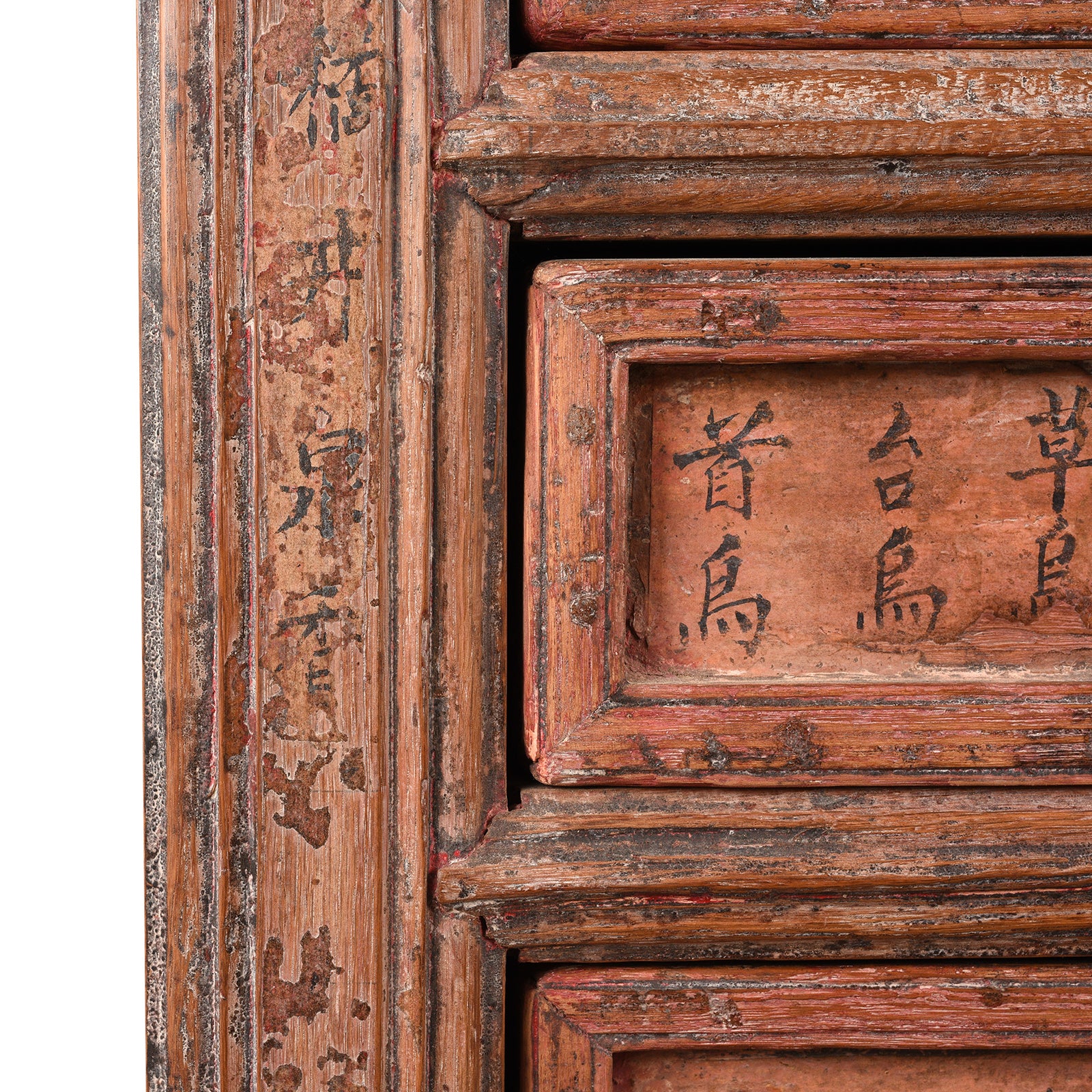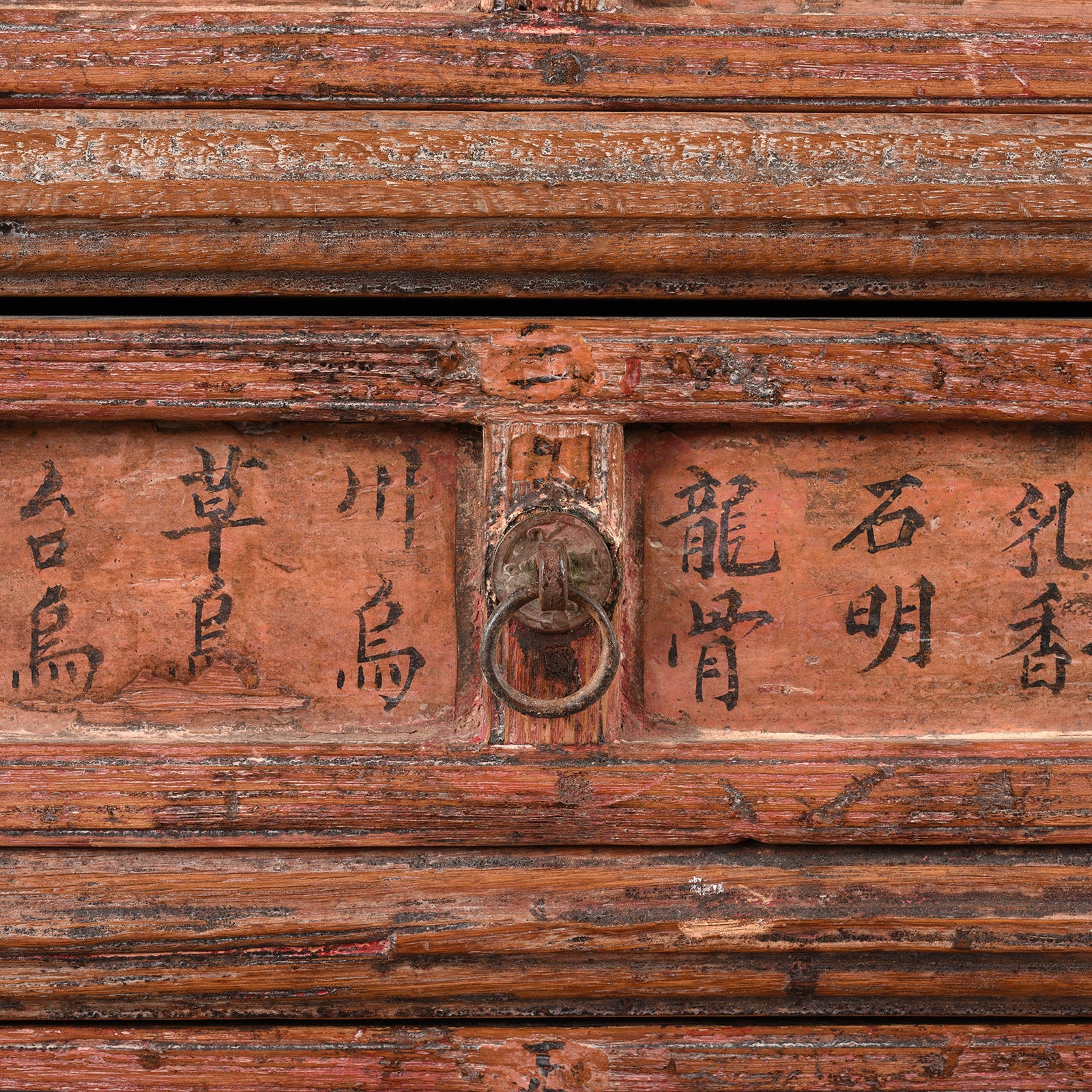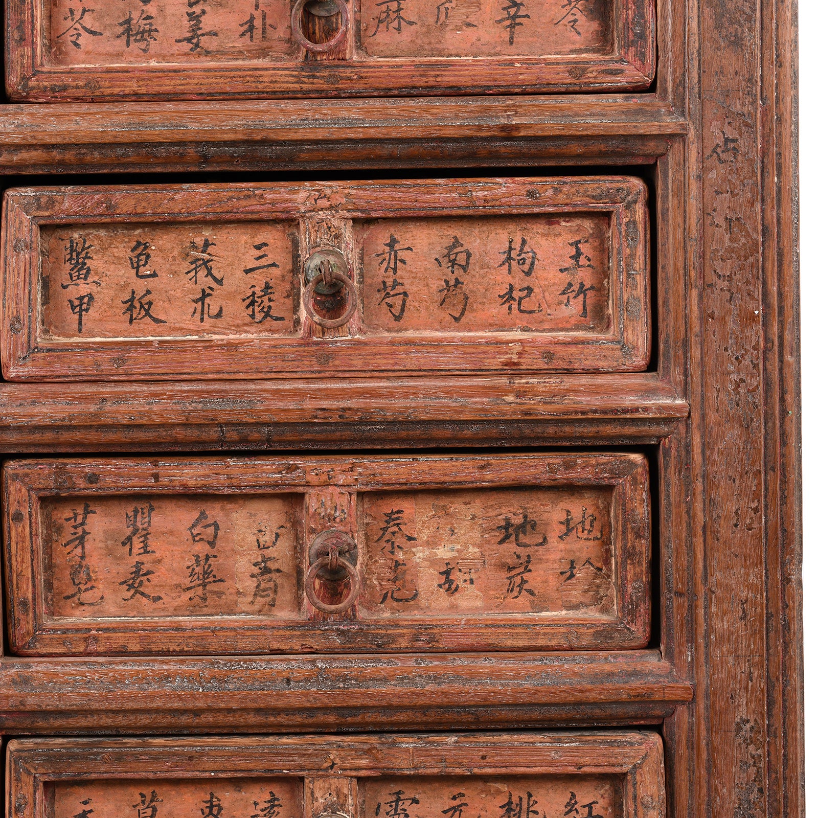 This is an excellent example of an antique Chinese traditional apothecary cabinet from Shanxi province. Traditional medicine was stored in this fabulous antique apothecary chest. It has the original painted drawer labels naming the various natural minerals and herbs that were mixed by the practitioner for each patient.