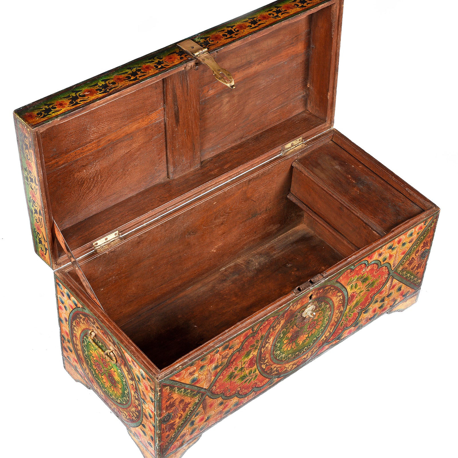 Interior Of Old Teak Chest From Rajasthan with New Paint - 19thC | INDIGO ANTIQUES