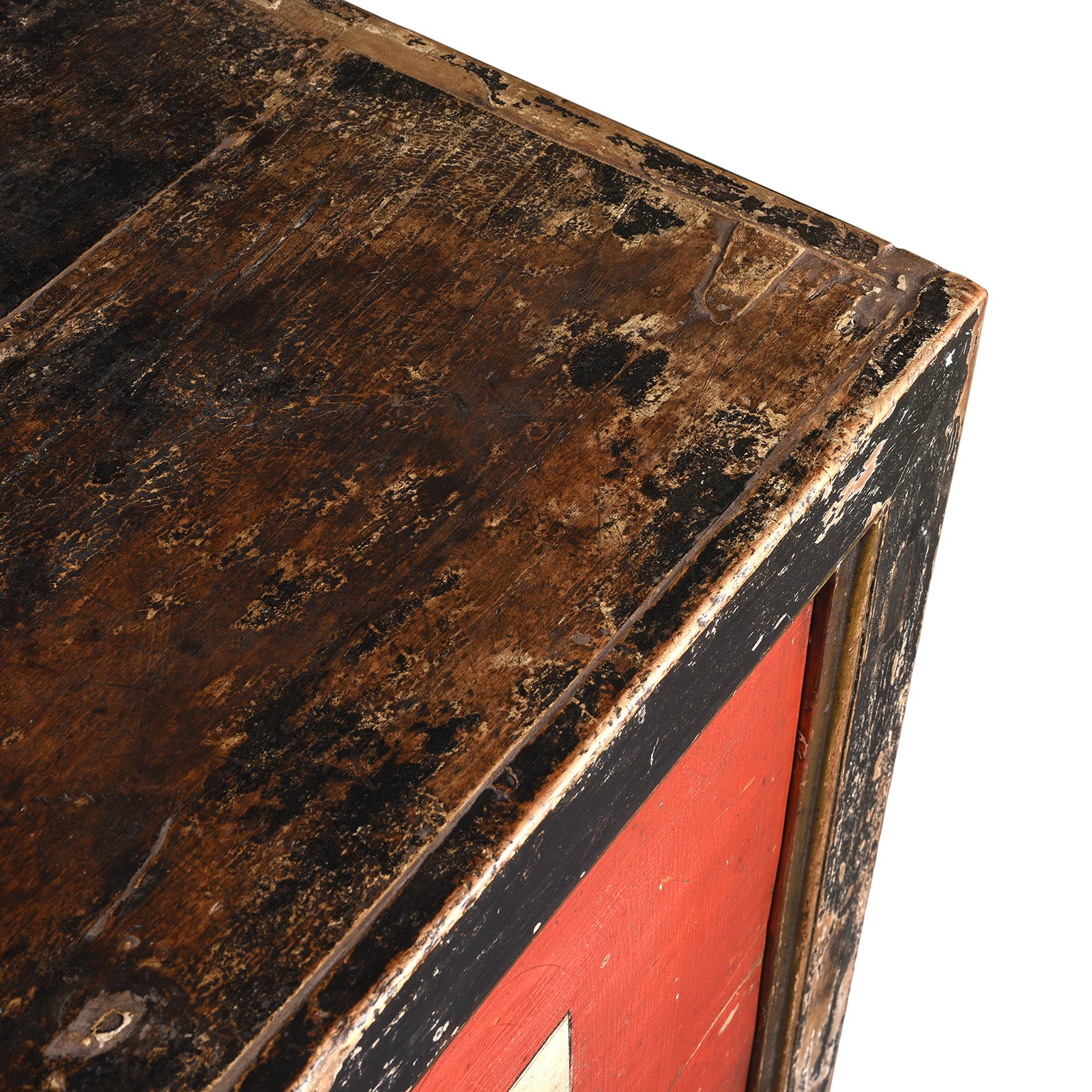 This antique Gansu sideboard was used for storing clothing and grain by the nomadic people of Gansu & Northern Shanxi in the 19th century. They were also used as altar cabinets for family ancestor worship. The front doors have been modified from the original closed front to make it more functional. It would have originally opened from the top by a hatch.