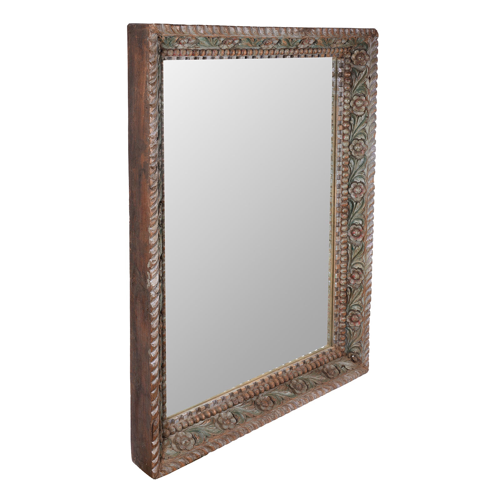Antique Painted Indian Mirror With Foliate Carvings | Indigo Antiques