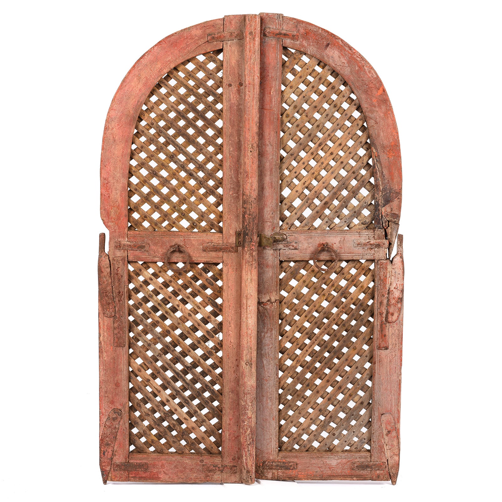 These charming window shutters have turned from a deep red to a faded pink over many years of exposure to the hot sun. Made from teakwood, they would have been constructed in Rajasthan over one hundred years ago.