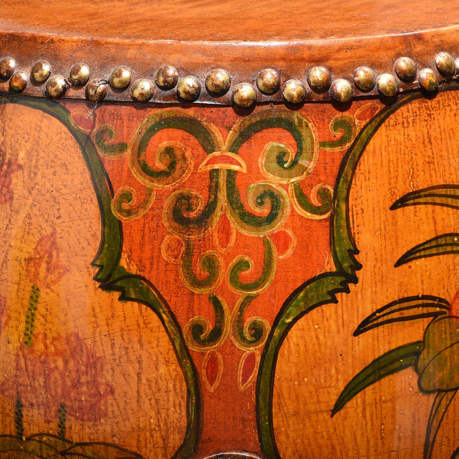 Reverse Painting On Painted Mongolian Drum Side Table | Indigo Antiques