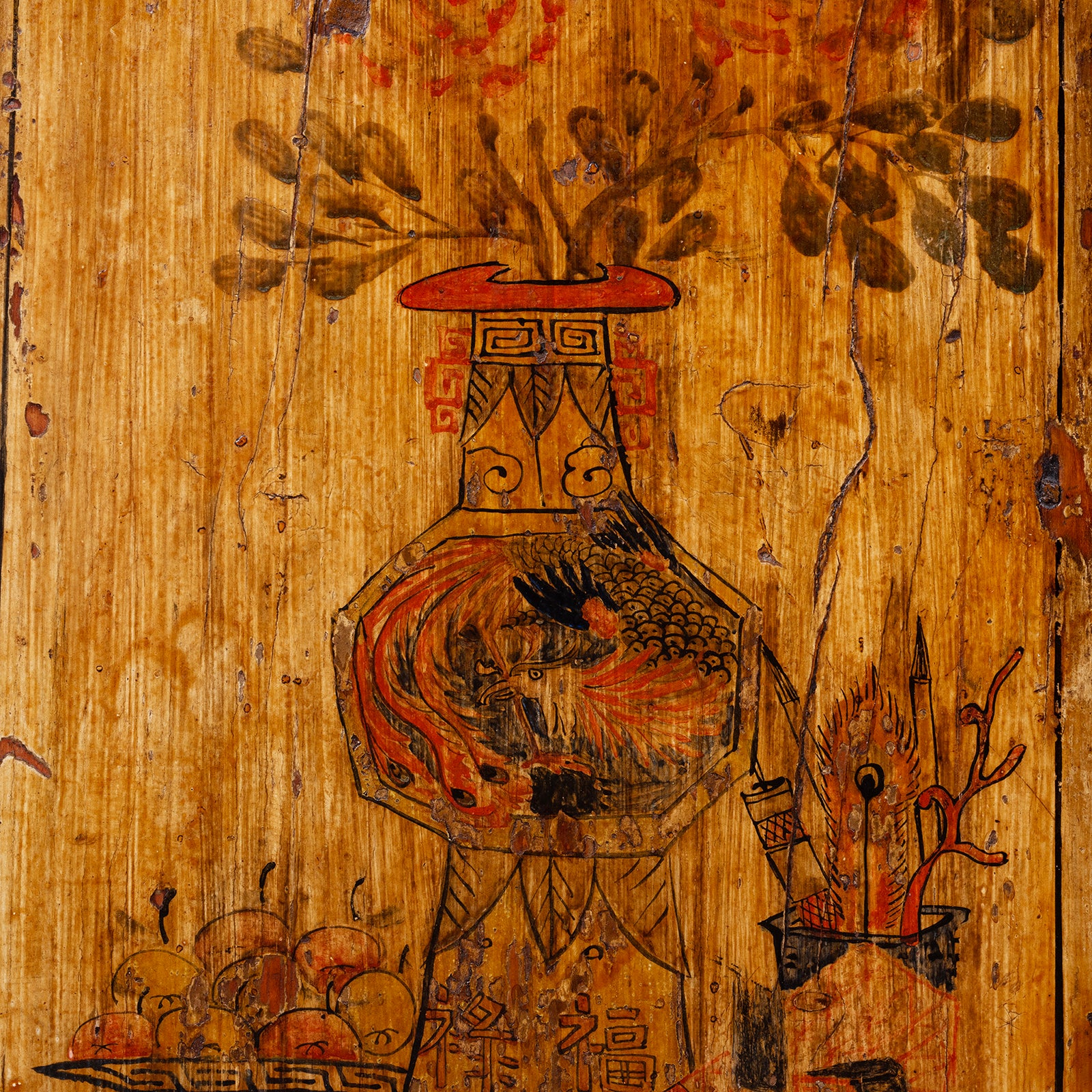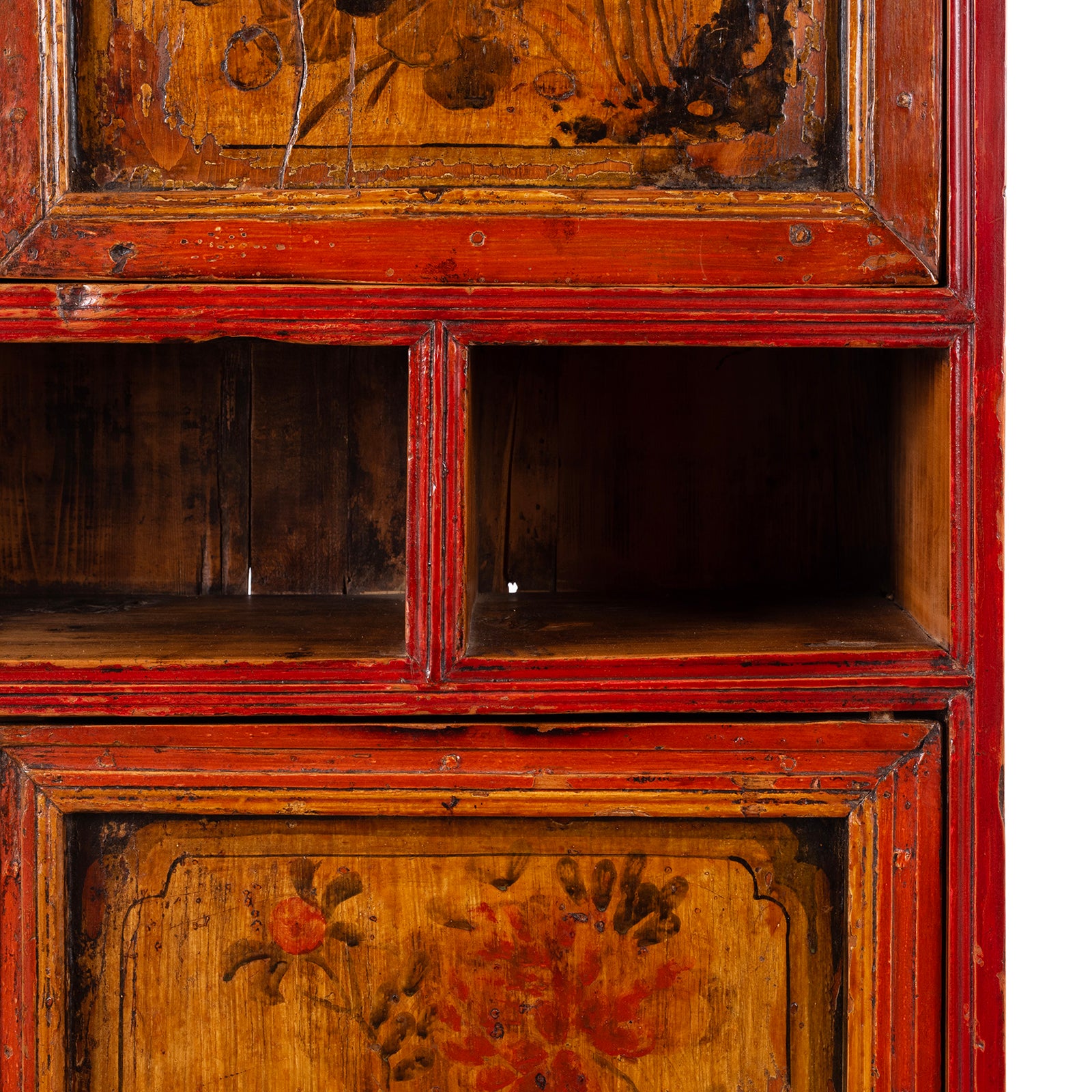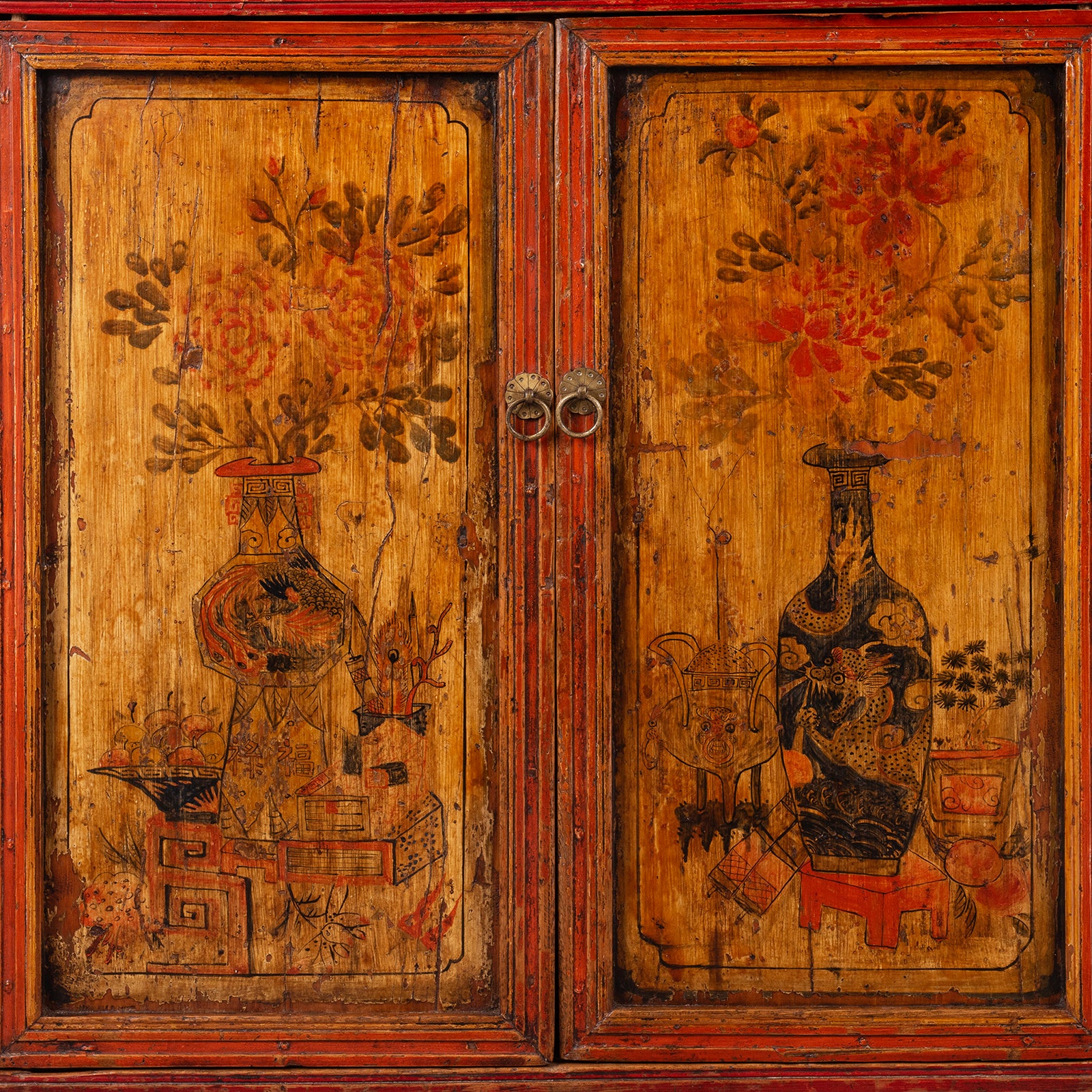 This exquisite Mongolian storage cabinet features a stunning original painting, dating back to the 19th century. Traditionally crafted from locally sourced pine, and cedar wood, this cabinet was used in the home for storage. A treasured piece of culture from Inner Mongolia.