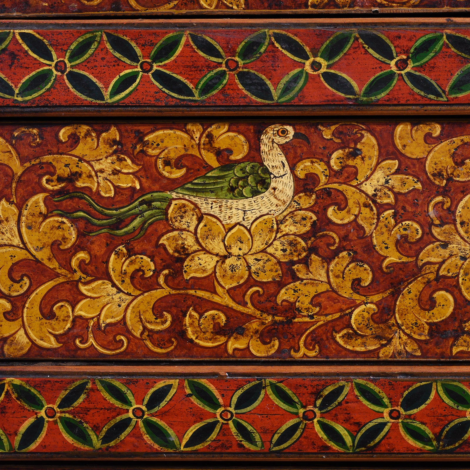 Jewels Of Tibet Detail From Painted Reproduction Tall Tibetan Cabinet | Indigo Antiques