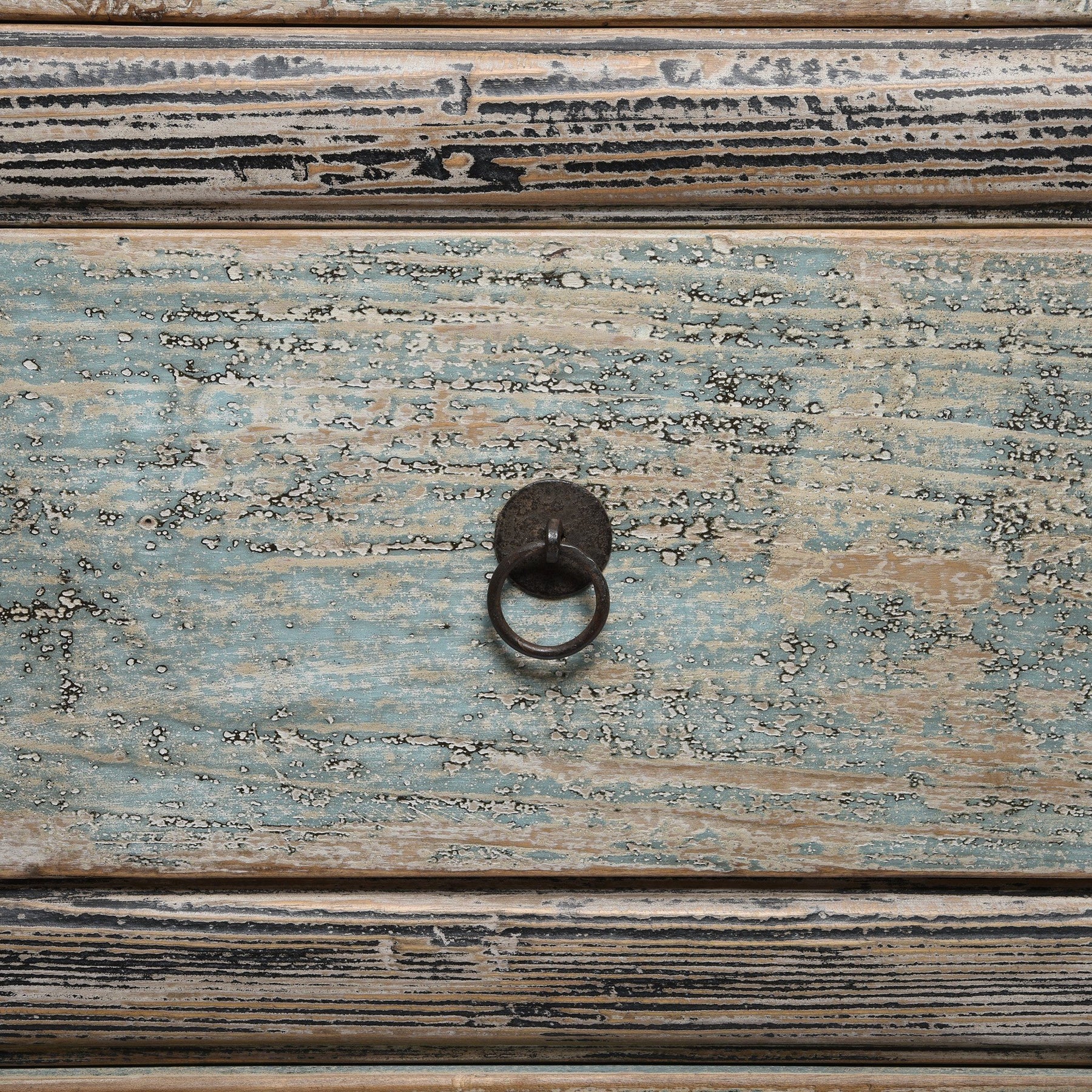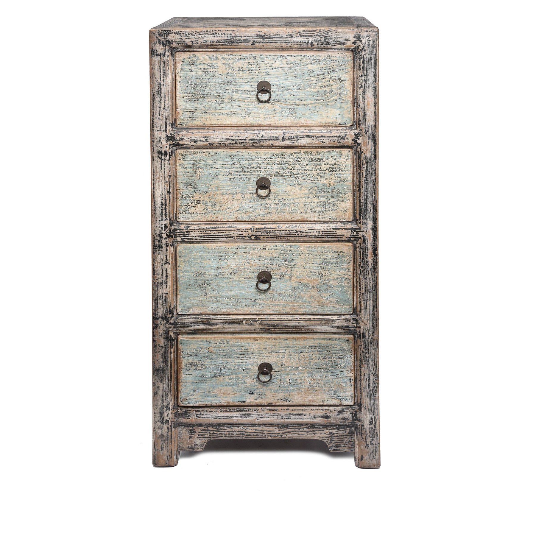 This very useful chest of drawers is made from old wood. This piece is ideal for a bedroom - practical and stylish. Supplied in a blue & black distressed painted finish.