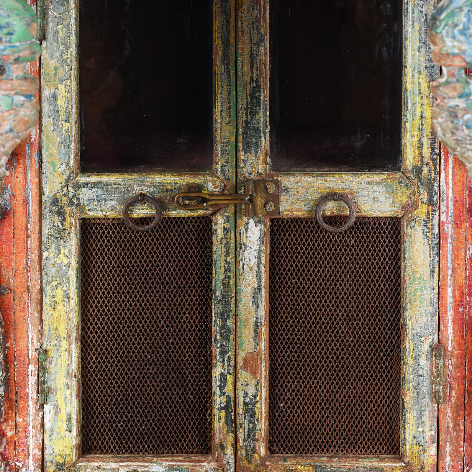 Open Doors View Of Antique Painted Teak House Shrine From Gujarat | indigo Antiques