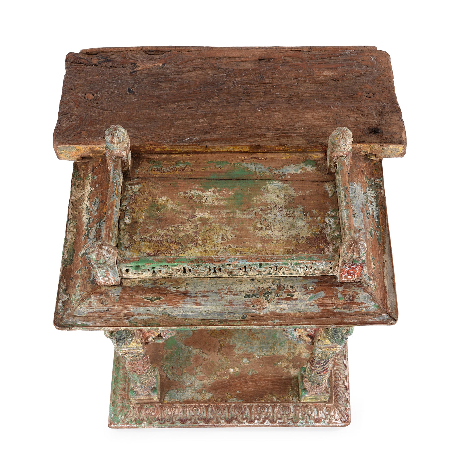 Top Down View Of Antique Painted Teak House Shrine From Gujarat | indigo Antiques