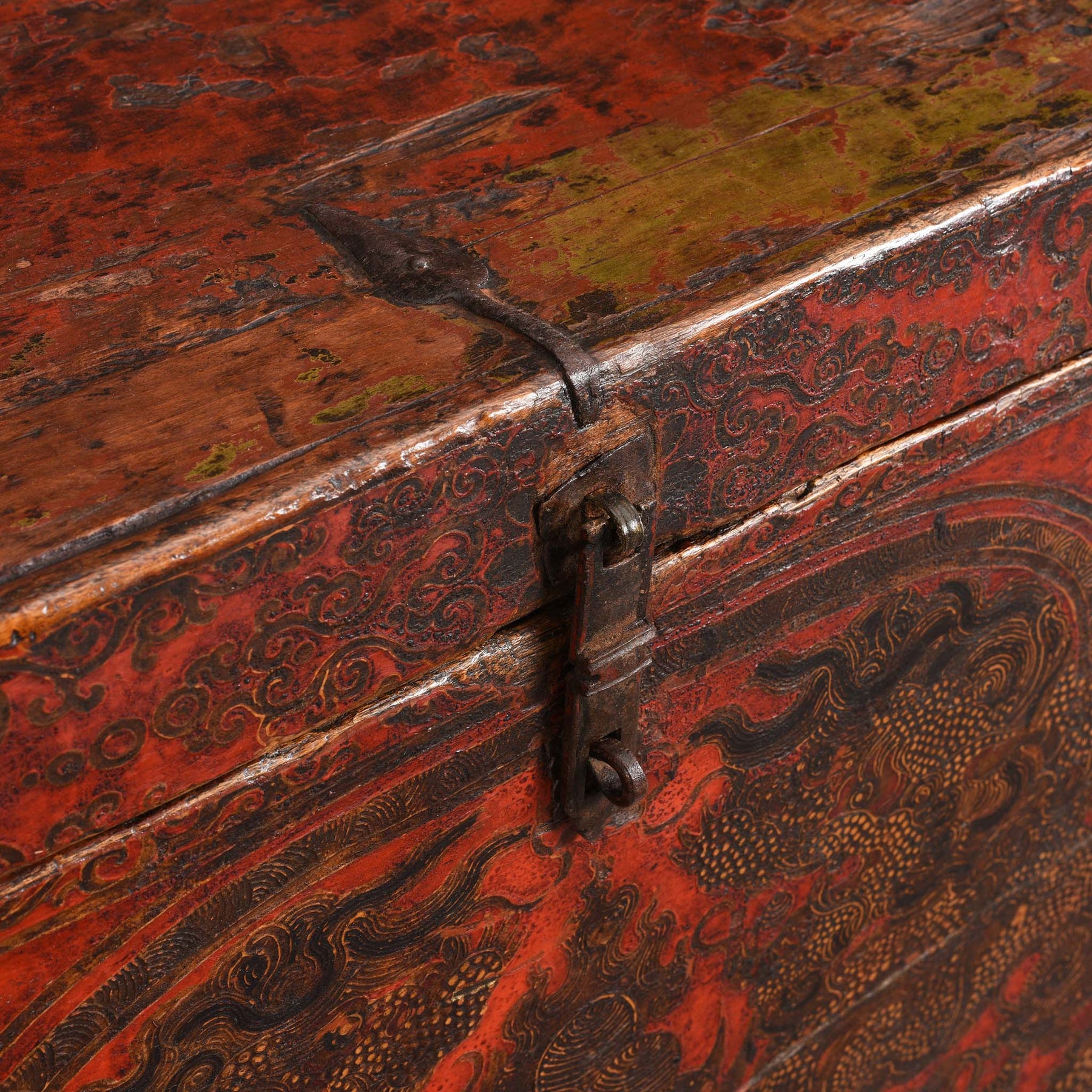 Tibetan antique furniture with original painting was always unusual to find but is incredibly difficult to come by. This very decorative dragon chest is one of our favourite pieces from an excellent quality recently acquired collection.