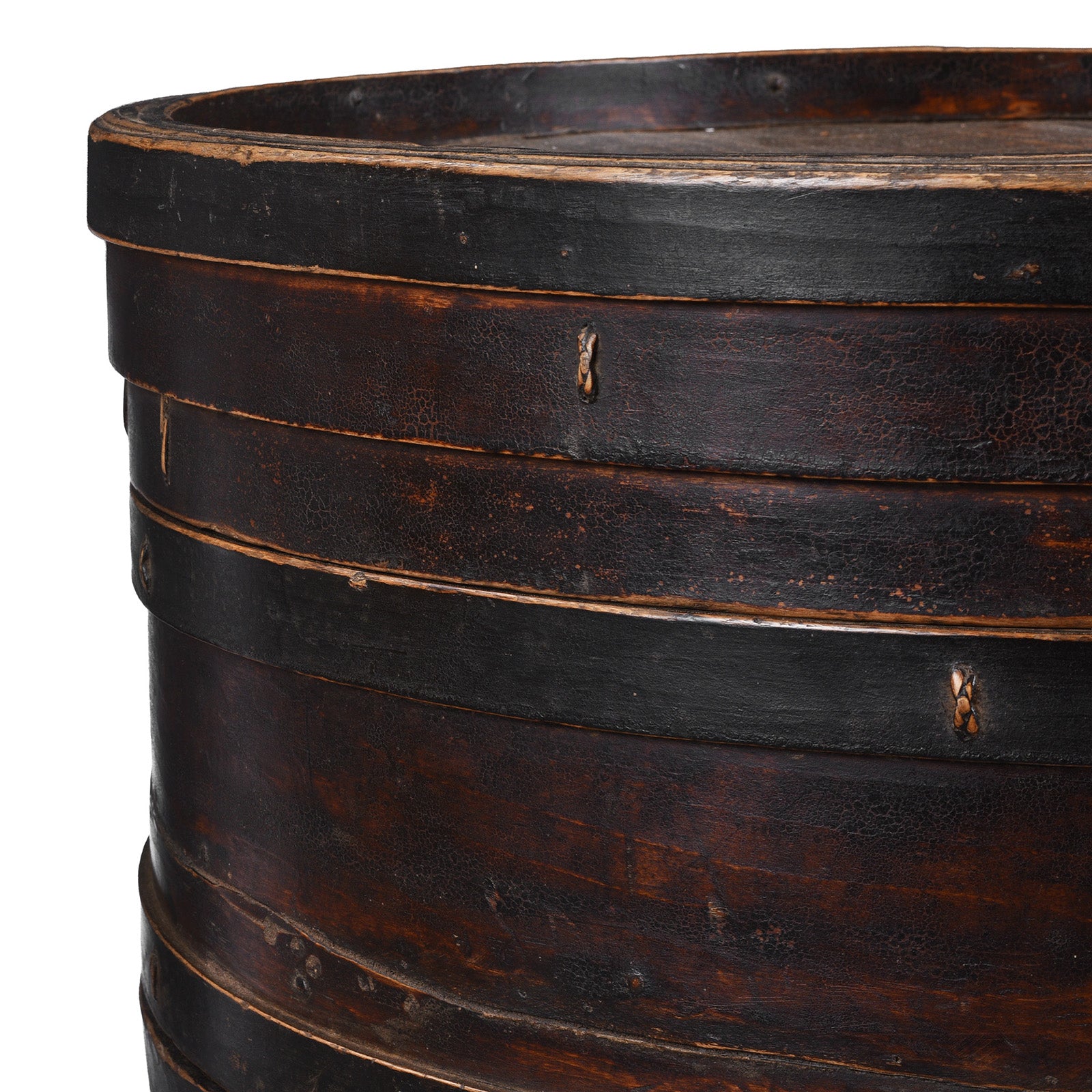 This beautifully timeworn painted willow hat box dates to the 19th century and originates from Shanxi province in northern China. Traditionally used for the storage of official hats worn by Chinese scholars and officials, these cylindrical containers were also employed to house ceremonial headwear reserved for important occasions and formal events.