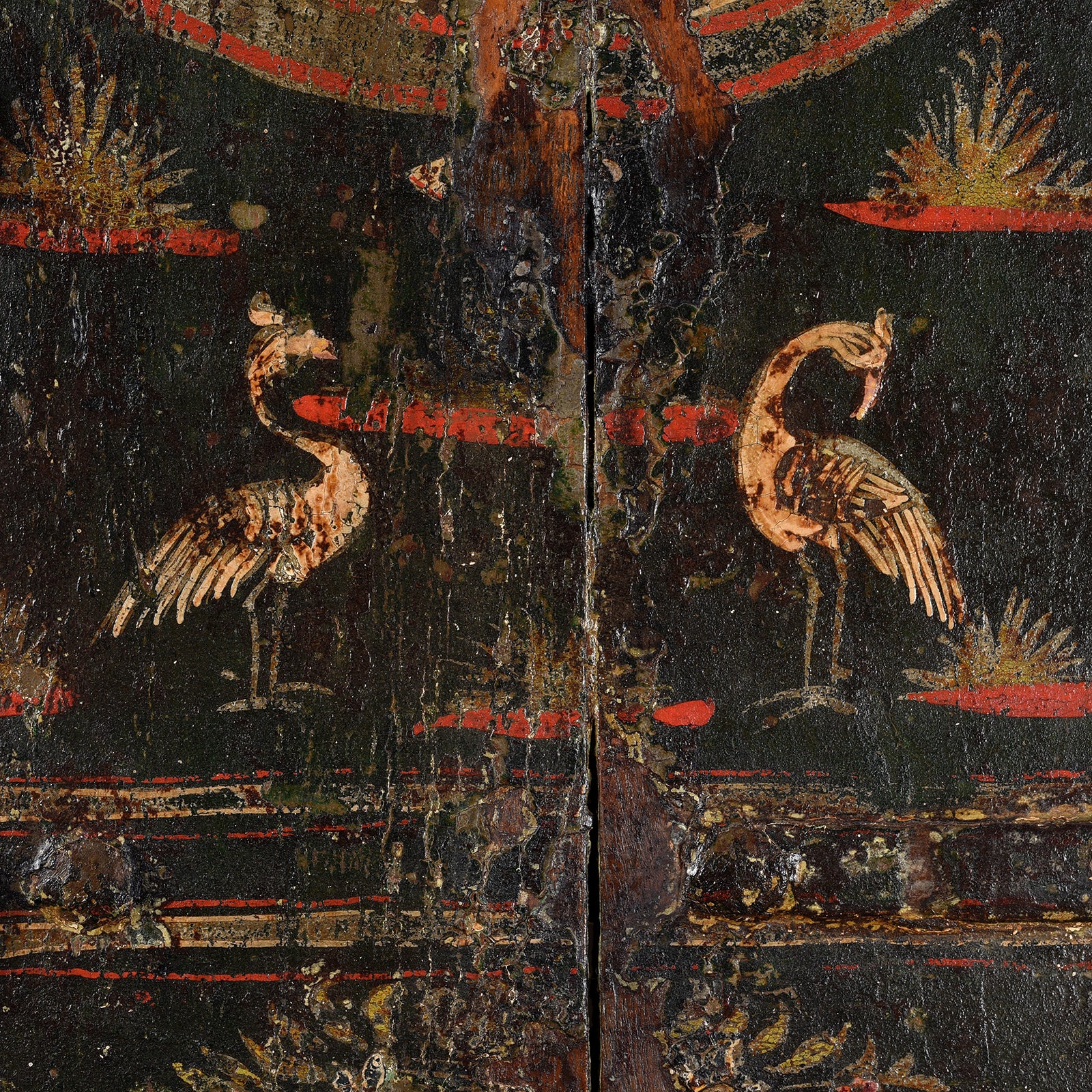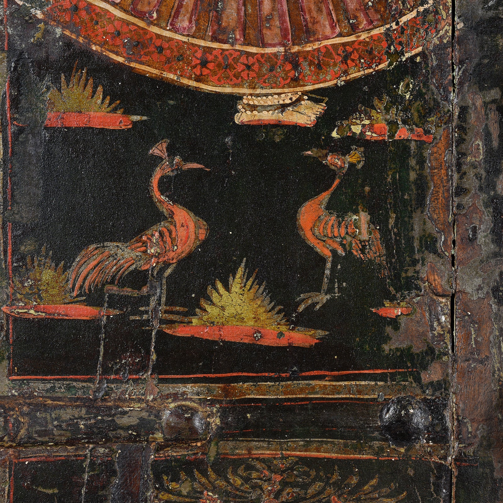 Peacock Detail From Antique Painted Indian Window Shutter From Bikaner - 18thC | Indigo Antiques