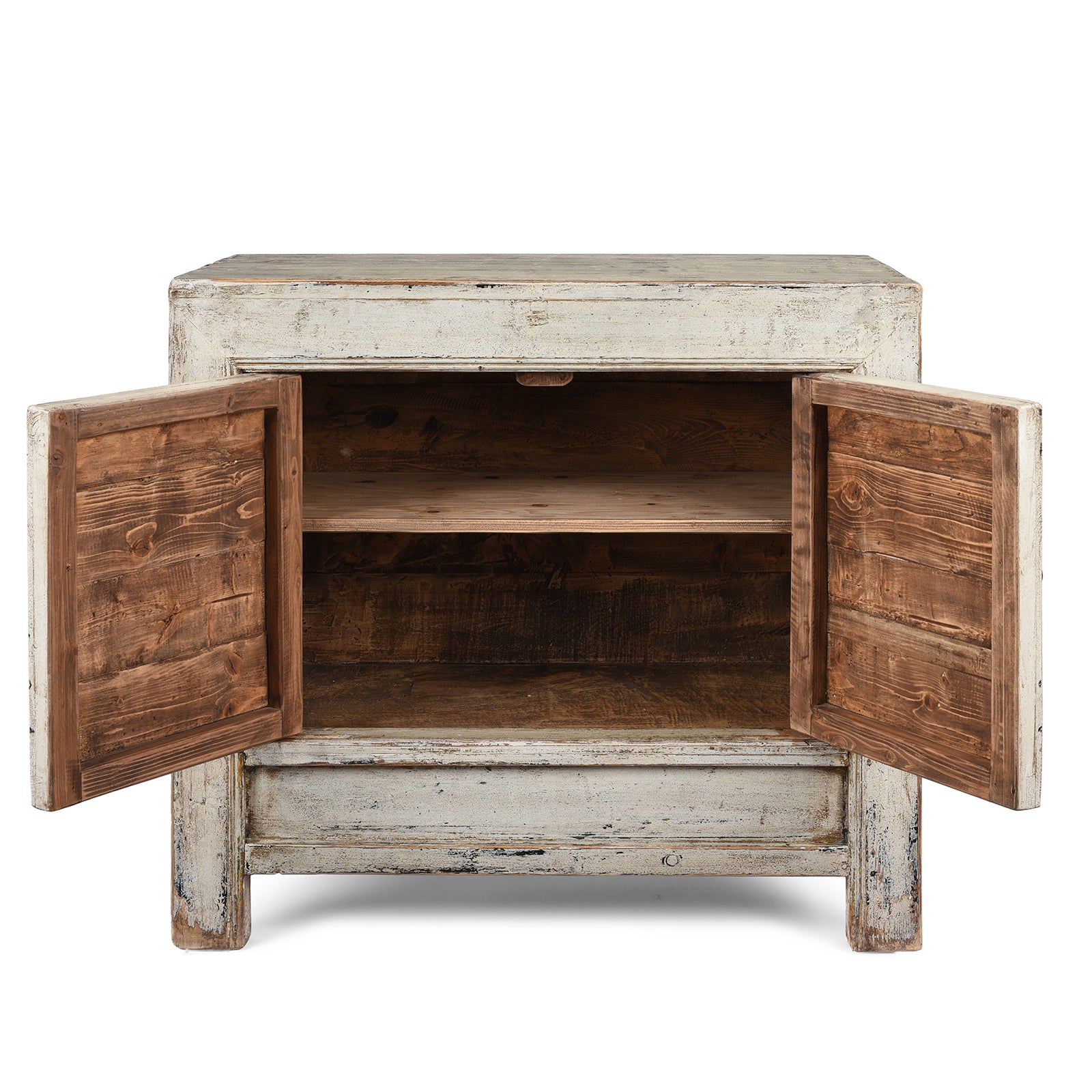 The single shelf and distressed finish makes this piece ideal storage in any room of a house, it makes a wonderful conversation piece.