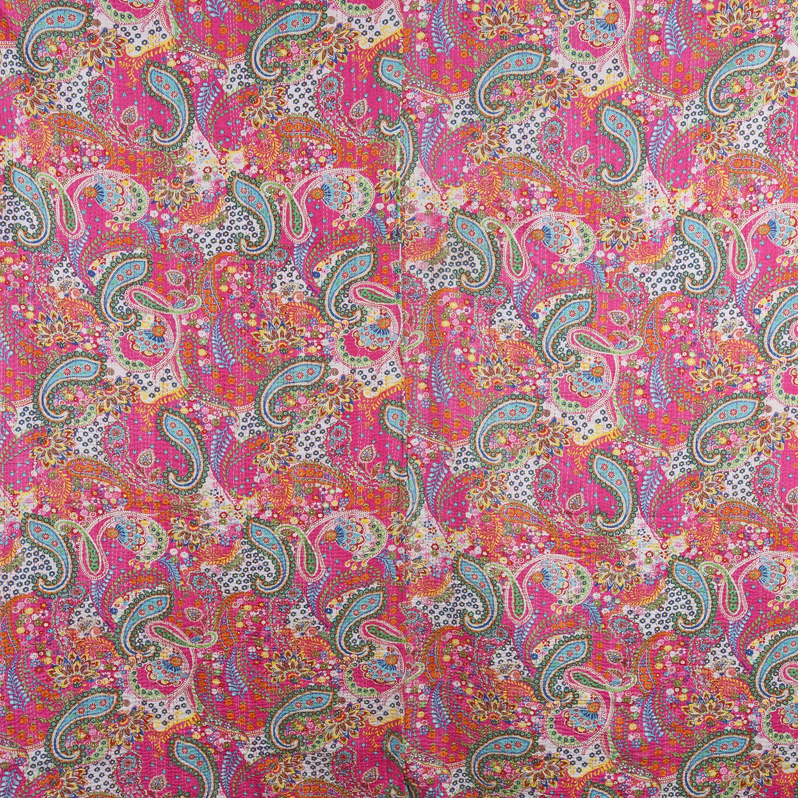 Pink Paisley Hand Block Printed Cotton Kantha Throw  - Double bed Size | Indigo Antiques