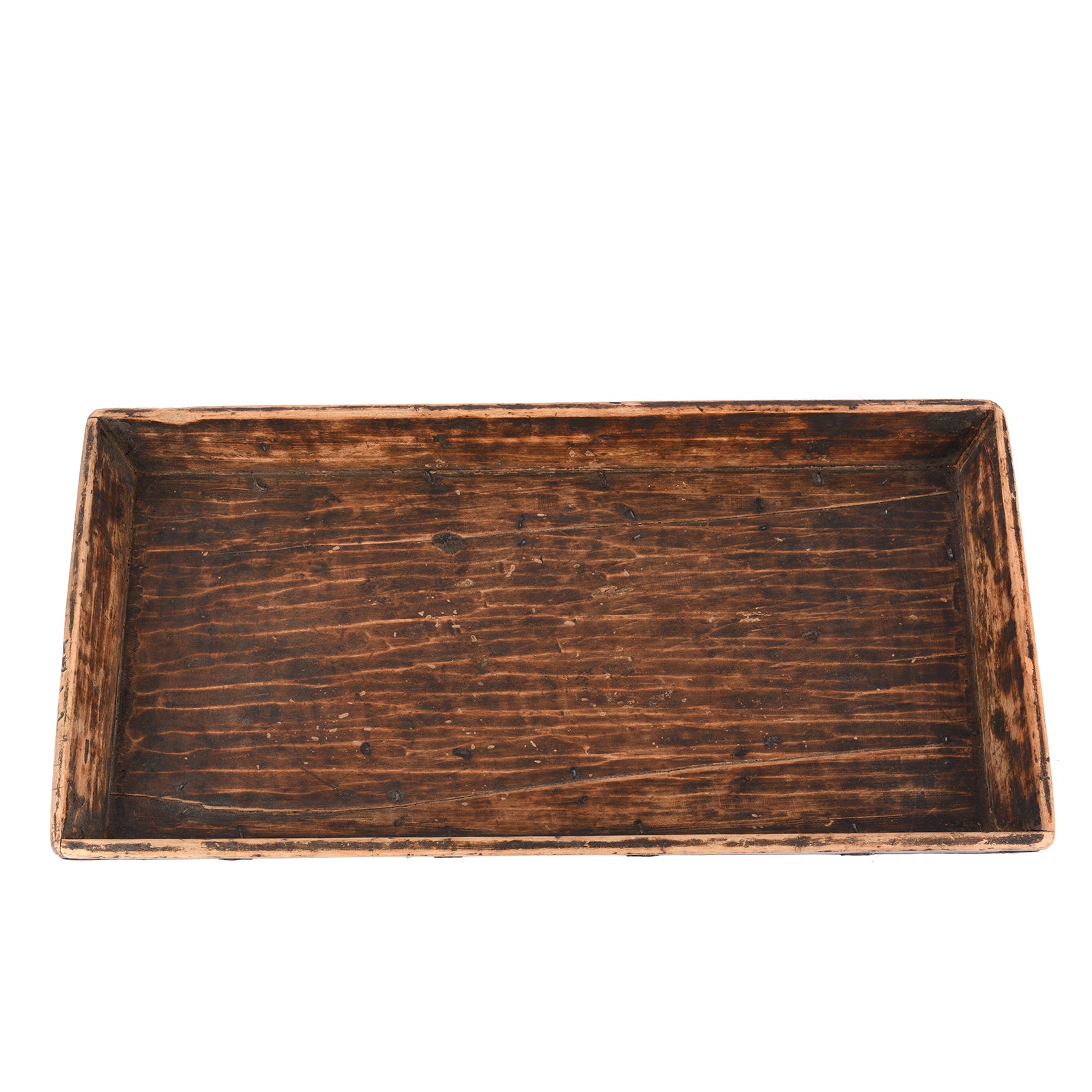 This rustic yet sturdy tray is over one hundred years old, and over that time, has developed a wonderful rich patina. The interior wood of the tray still bares the adze marks of its construction.