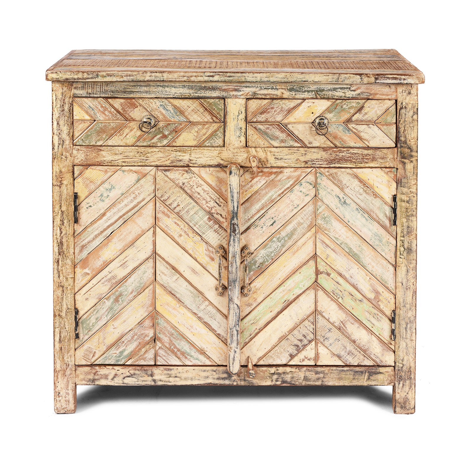 Reclaimed 2 Door Indian Parquet Teak Side Cabinet | Indigo Antiques