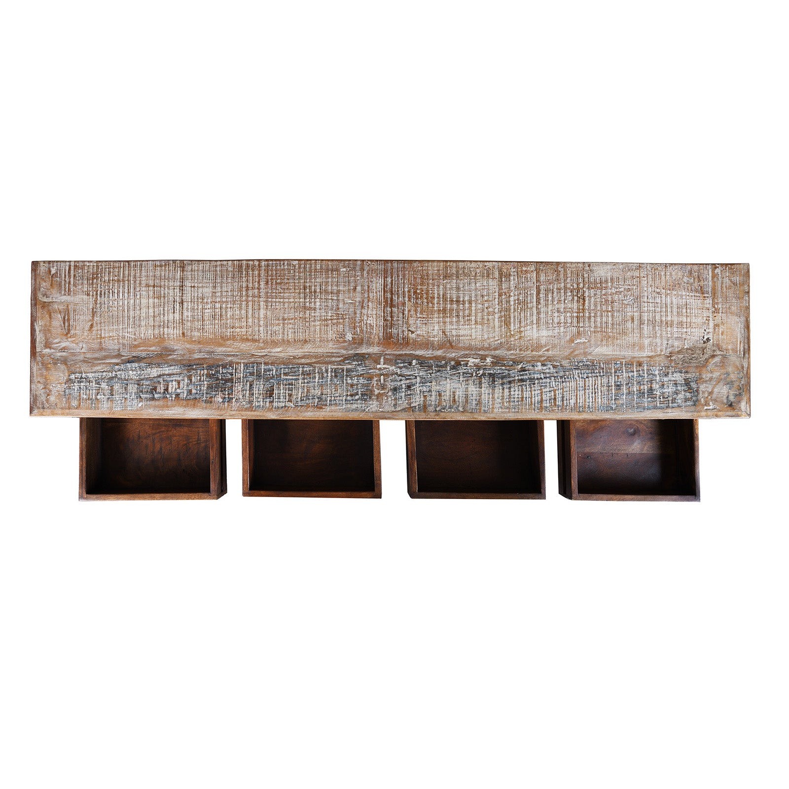 Top Down View Of Reclaimed Teak Chest Of Drawers With Old Paint | Indigo Antiques
