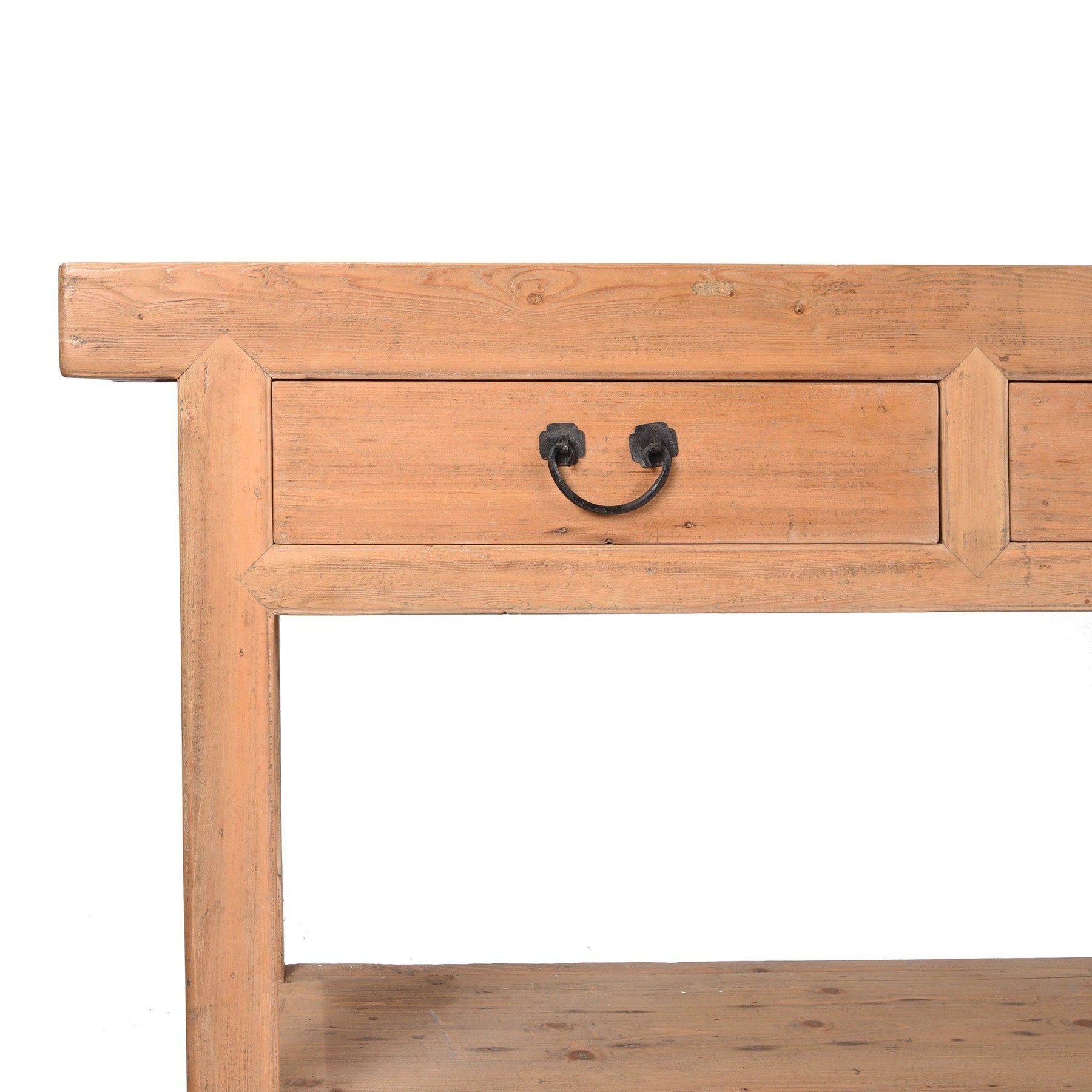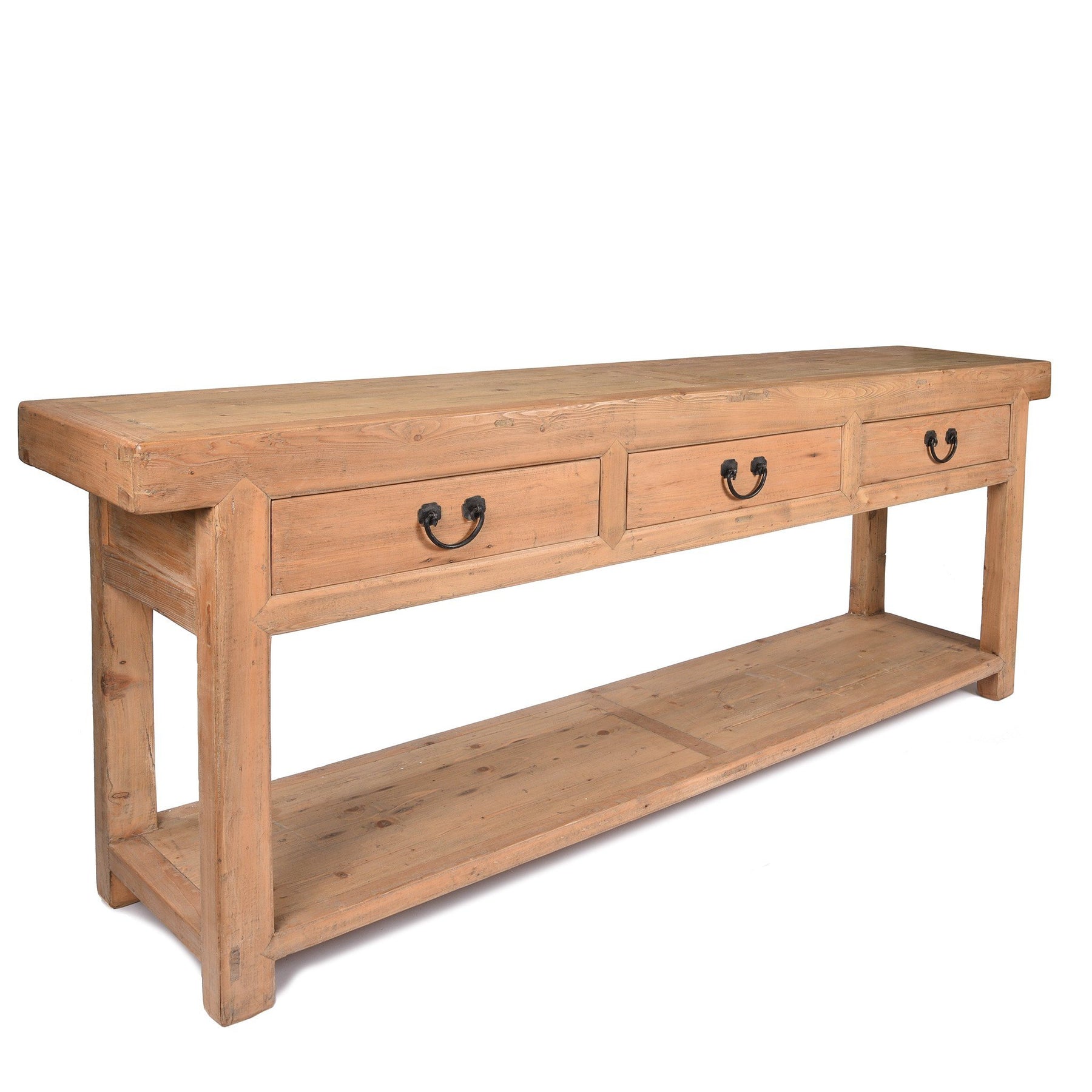 This lovely Chunky Farmhouse Console table with three drawers is made from reclaimed elm made in the traditional Chinese Shanxi style. Available in two colours, natural & blue