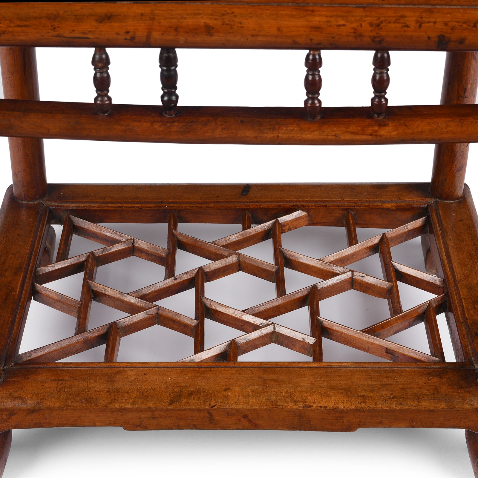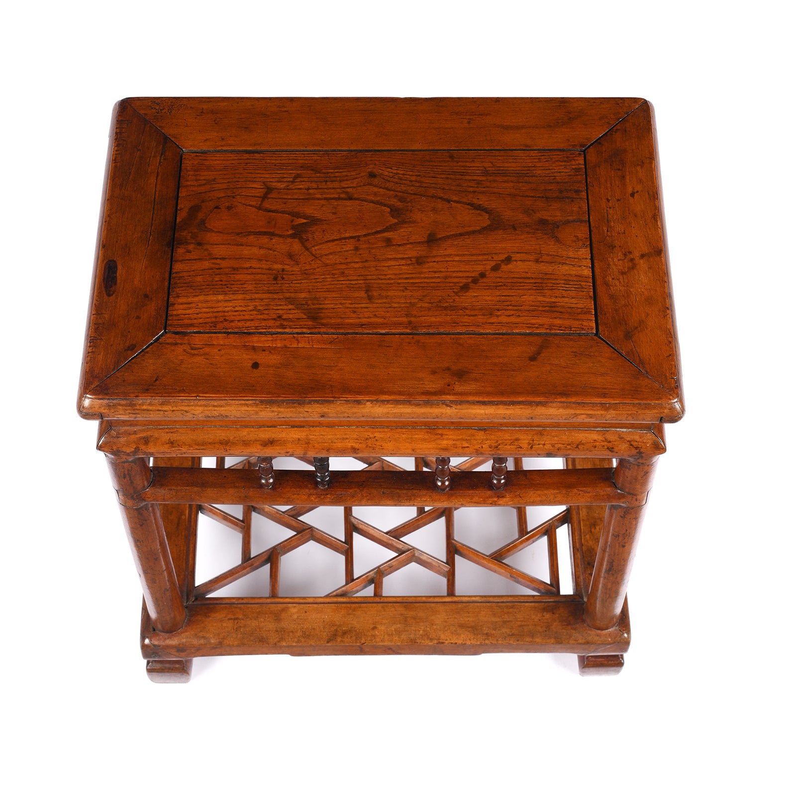 This unusual Chinese side table with a cracked ice design dates from the 19th century and is from Jiangsu. It is constructed from a cypress frame & red elm (zelkova) top. Red elm as the name suggests has a more red tone and a more aesthetically pleasant grain. Red elm (jumu / 榉木), also known as zelkova or 'southern elm' is considered a superior wood to yumu, its northern cousin.