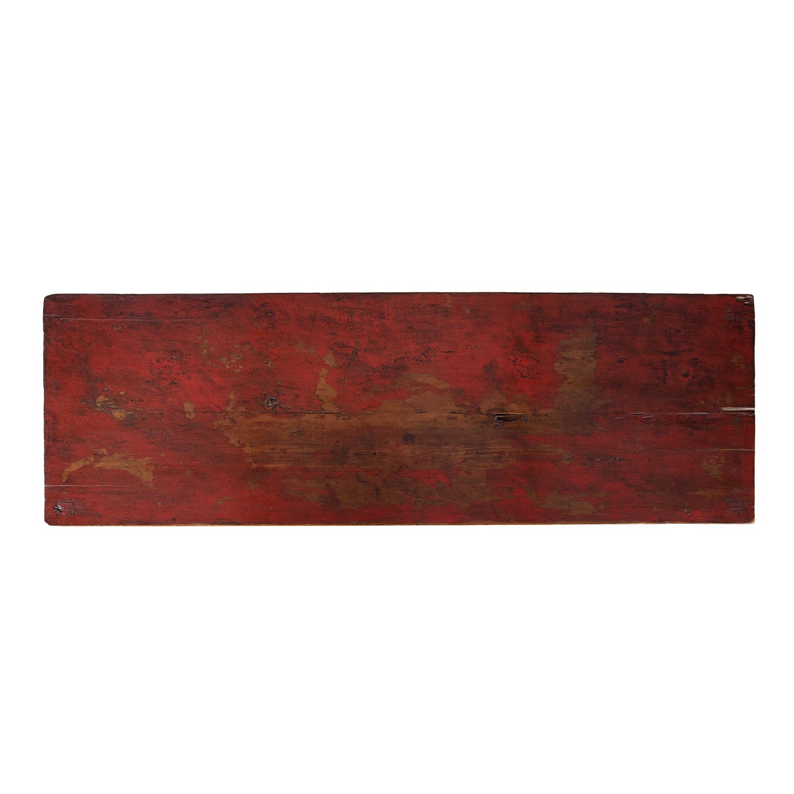 This richly painted altar cabinet was made in Central Tibet in the 19th century, and displays the deep red lacquer and gilt decoration that define Tibetan ritual furniture. The front is arranged in a grid of framed panels, each containing finely rendered gilt dragon roundels, representing protection and power. The remaining panels feature gilt phoenix motifs, symbols of renewal, virtue, and auspicious transformation, all framed by scrolling floral ornament. The surface retains its original lacquer and gilding, softened through long use.