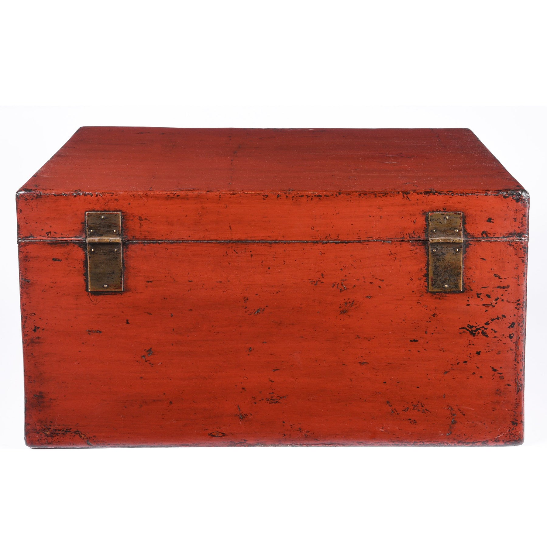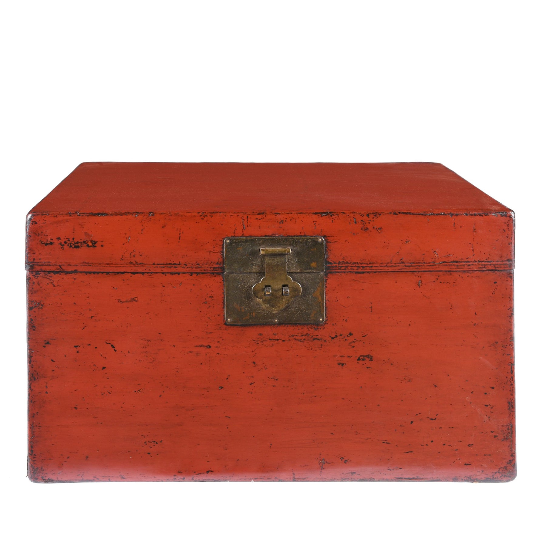Chinese Red Lacquer Leather Trunk From Shanghai - Ca 1920 | Indigo Antiques