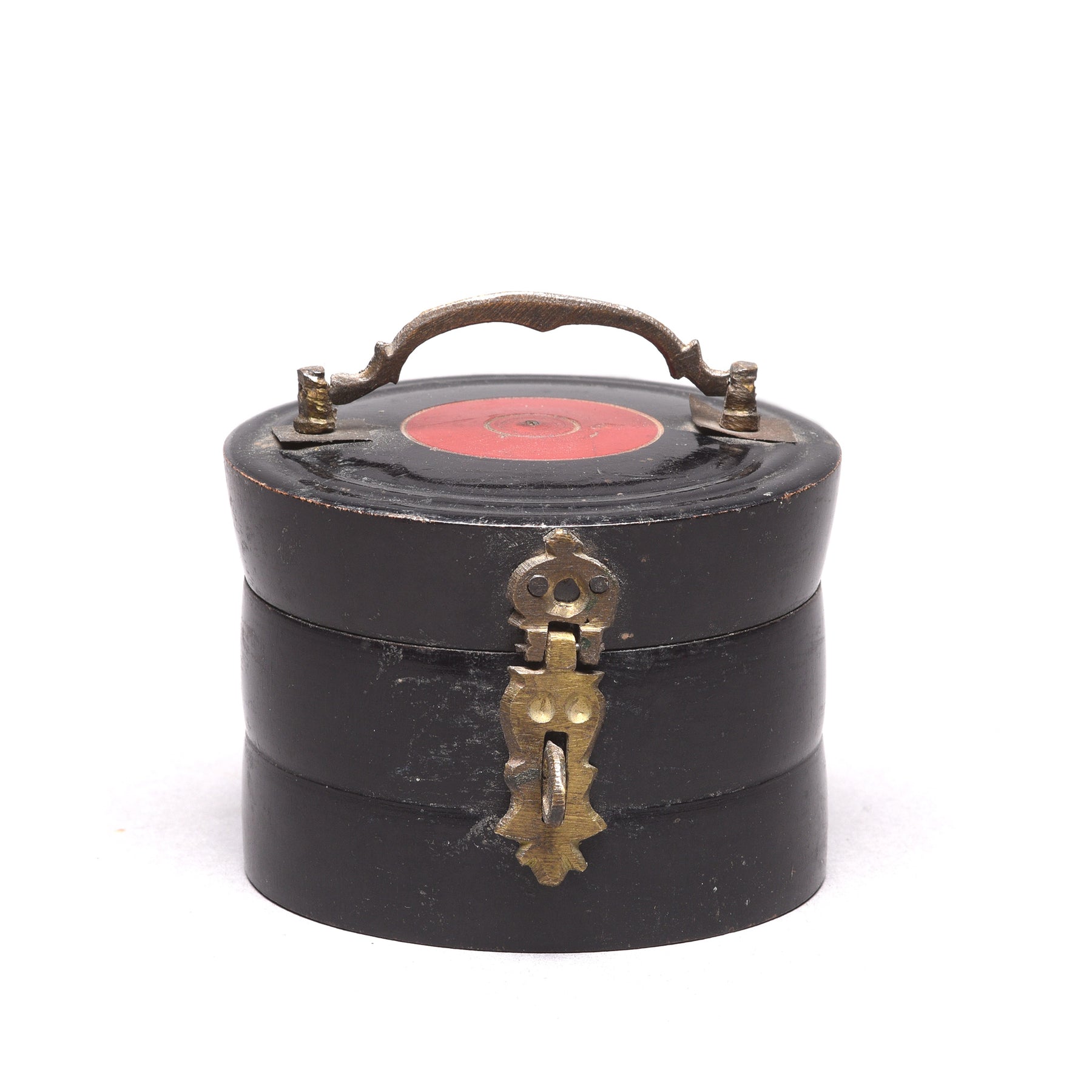 Regency Style Black Lacquer Pot From Rajasthan - 19th Century