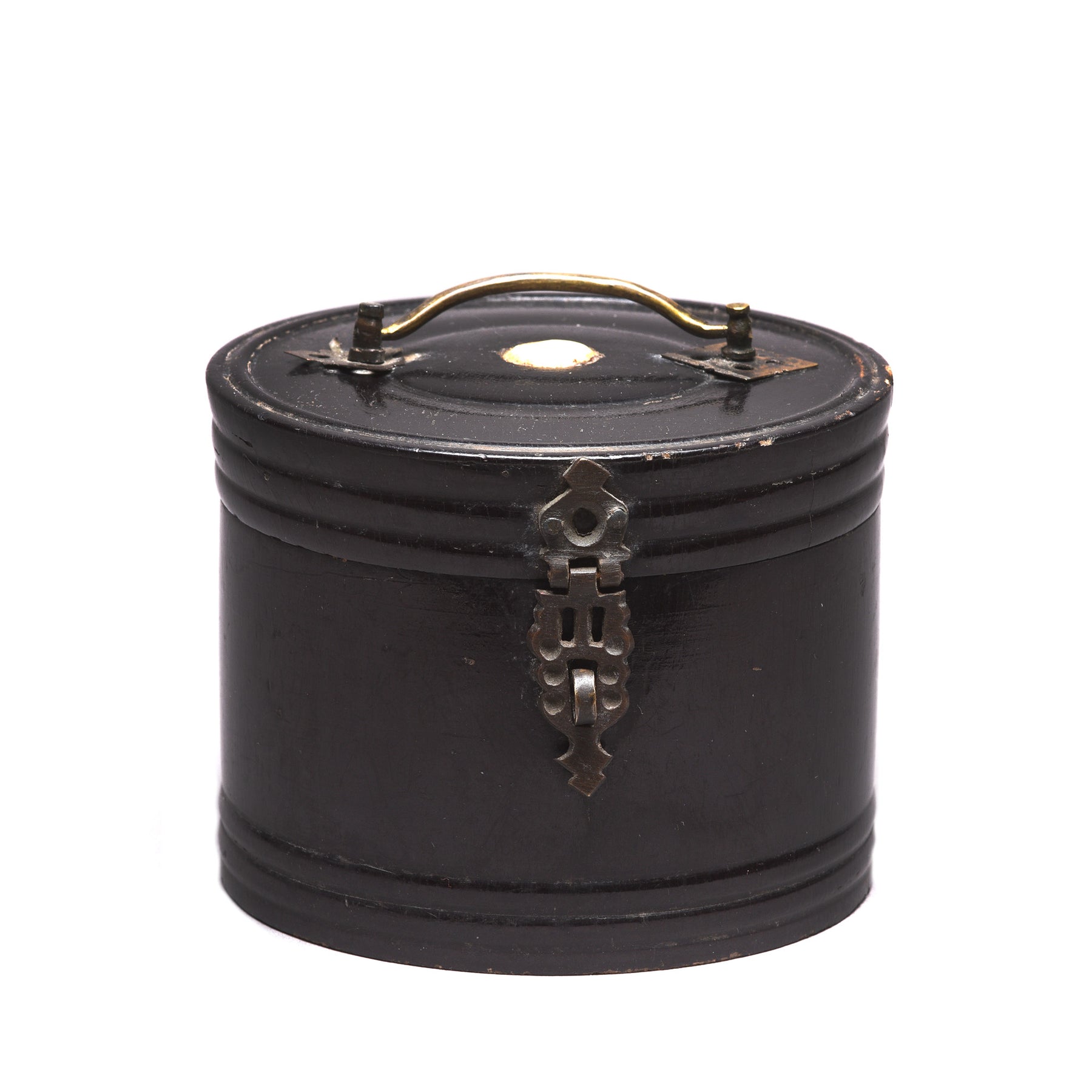 Regency Style Black Lacquer Pot From Rajasthan -19th Century
