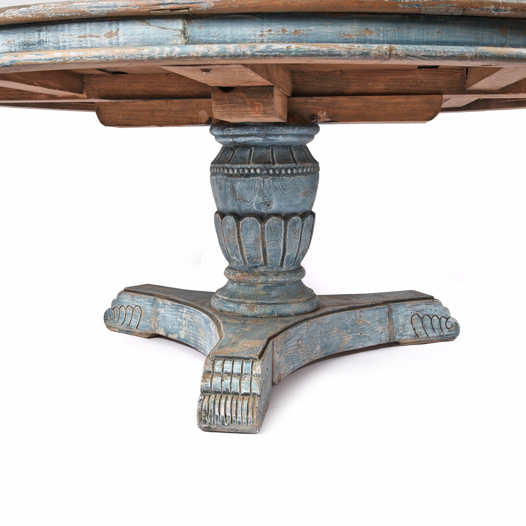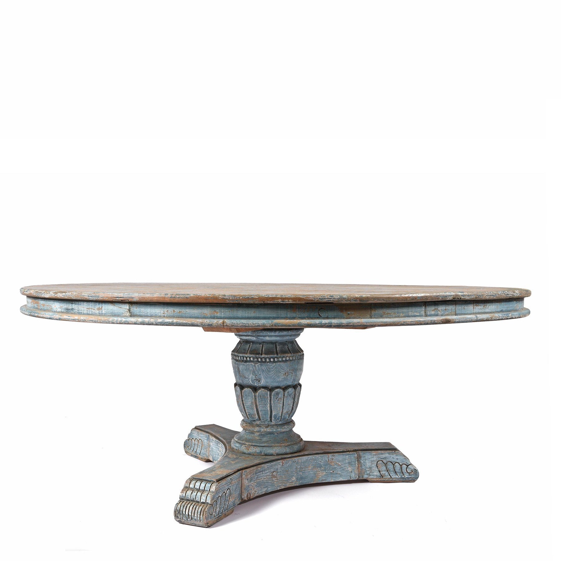 Round Pedestal Dining Table Made From Old Blue Painted Pine | Indigo Oriental Antiques