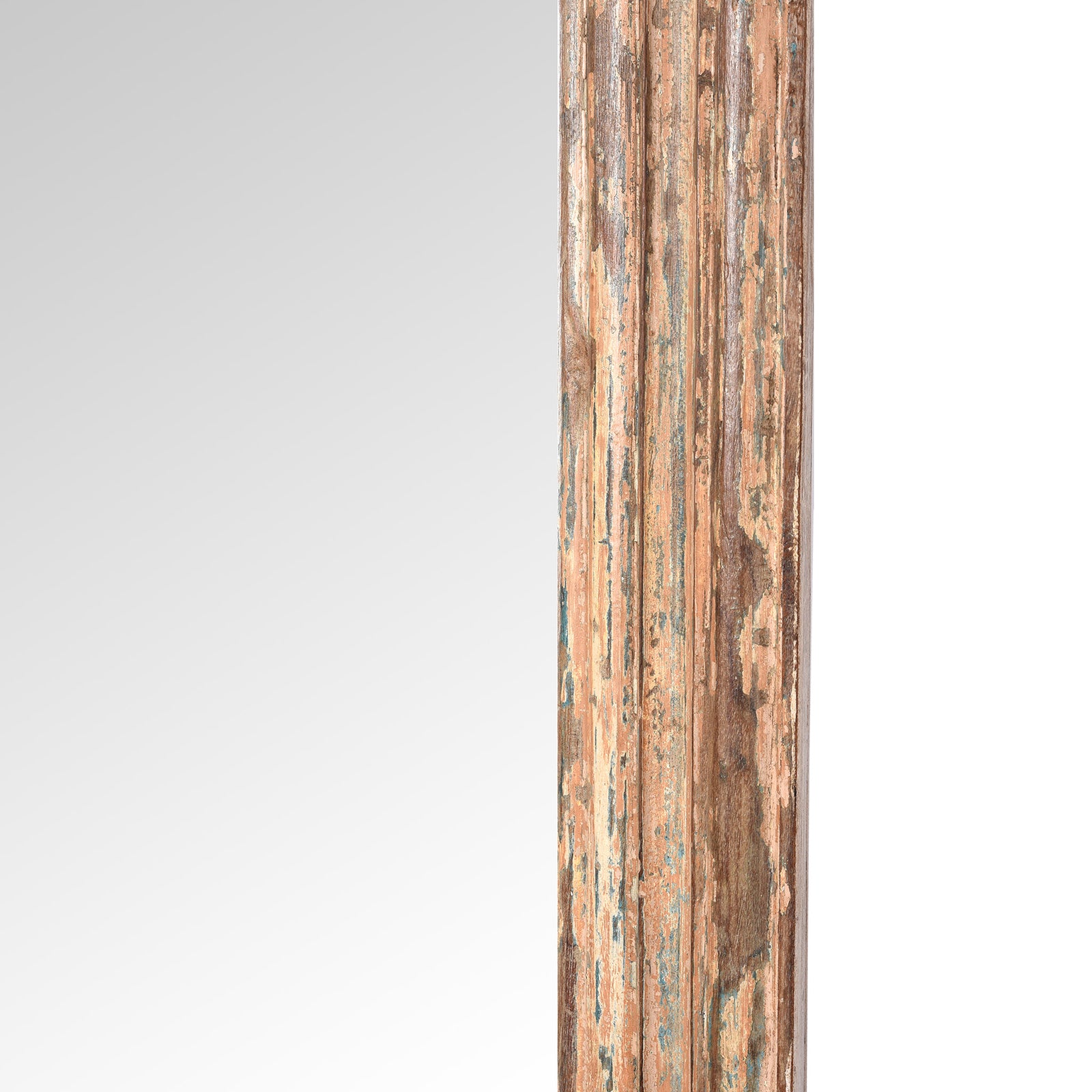 Frame Detail From Rustic Pink Painted Mirror Made From Old Architectural Teak  (122 x 62 cm) | Indigo Antiques