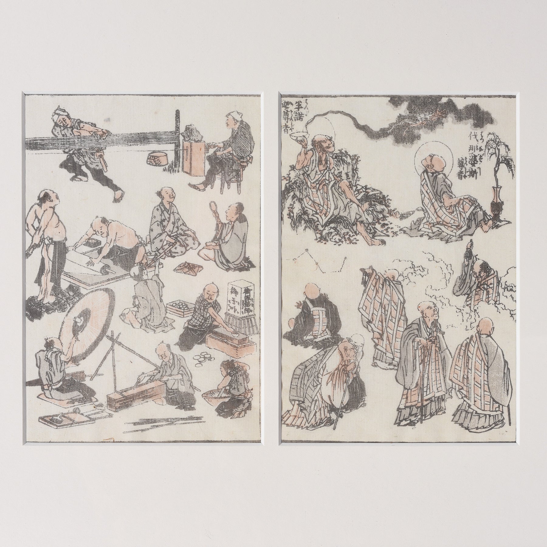 A Japanese woodblock print by Hokusai (1760-1849) from his Manga Volume 2 book depicting traditional Japanese daily life. Originally published in 1814 by Hanabusaya Heikichi.