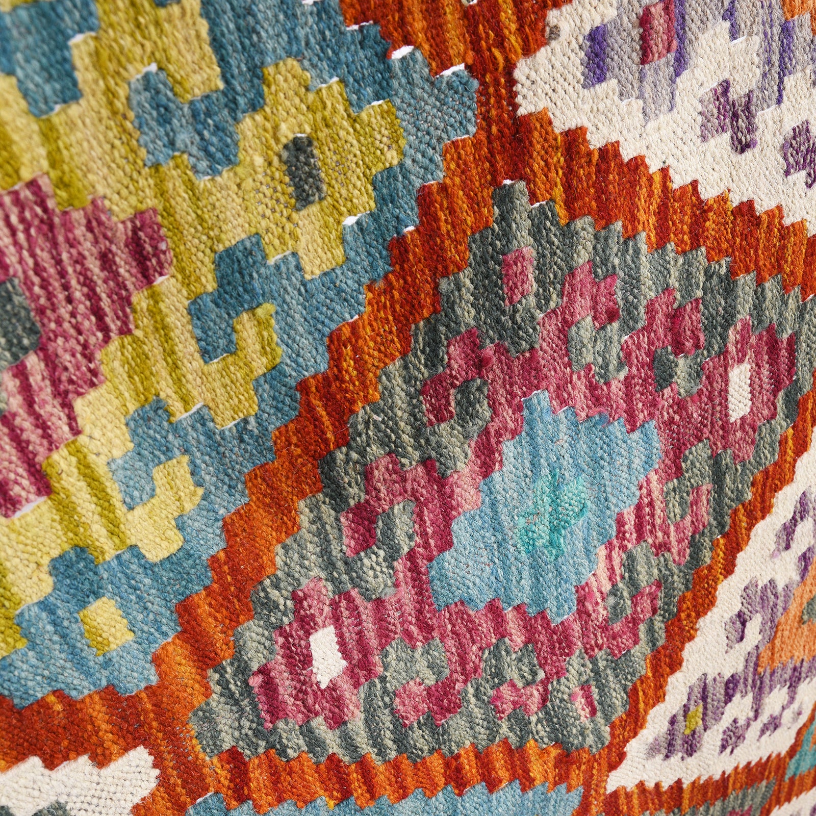 This flatweave kelim rug is skilfully hand woven in Pakistan. The Shirvan style originates from the town of Shirvan just south of the Caucasus mountain range originally Persian and now part of Azerbaijan. Using hundspun wool and vegetable dyes, the locals of Shirvan created vivid and exciting rugs using the limited palette of colours they had available.
