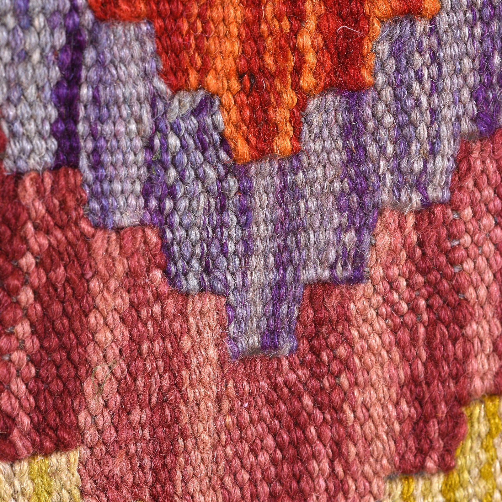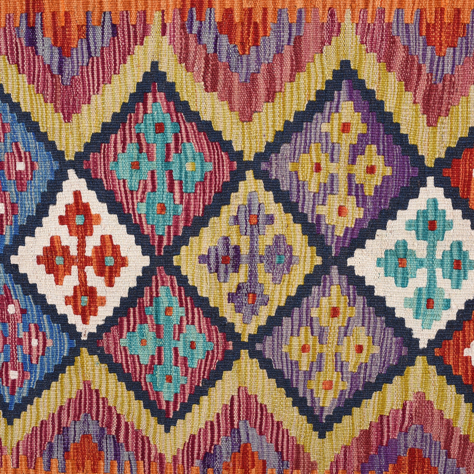 This flatweave kelim rug is hand woven in Pakistan. The Shirvan style originates from the town of Shirvan just south of the Caucasus mountain range originally Persian and now part of Azerbaijan. Using hundspun wool and vegetable dyes, the locals of Shirvan created vivid and exciting rugs using the limited palette of colours they had available.
