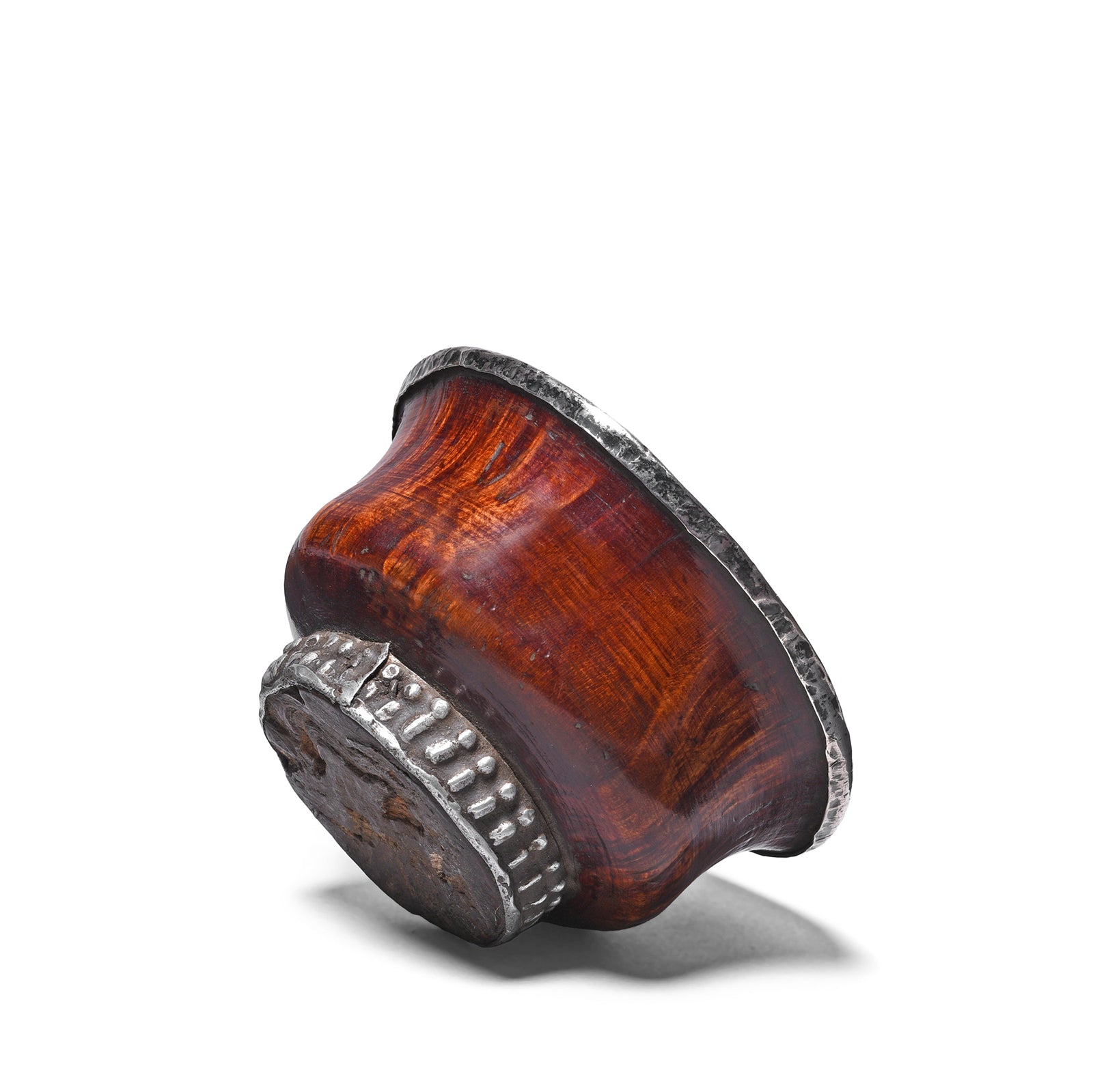 Underside Of Silver & Burr Walnut Tsampa Bowl From Tibet | Indigo Antiques