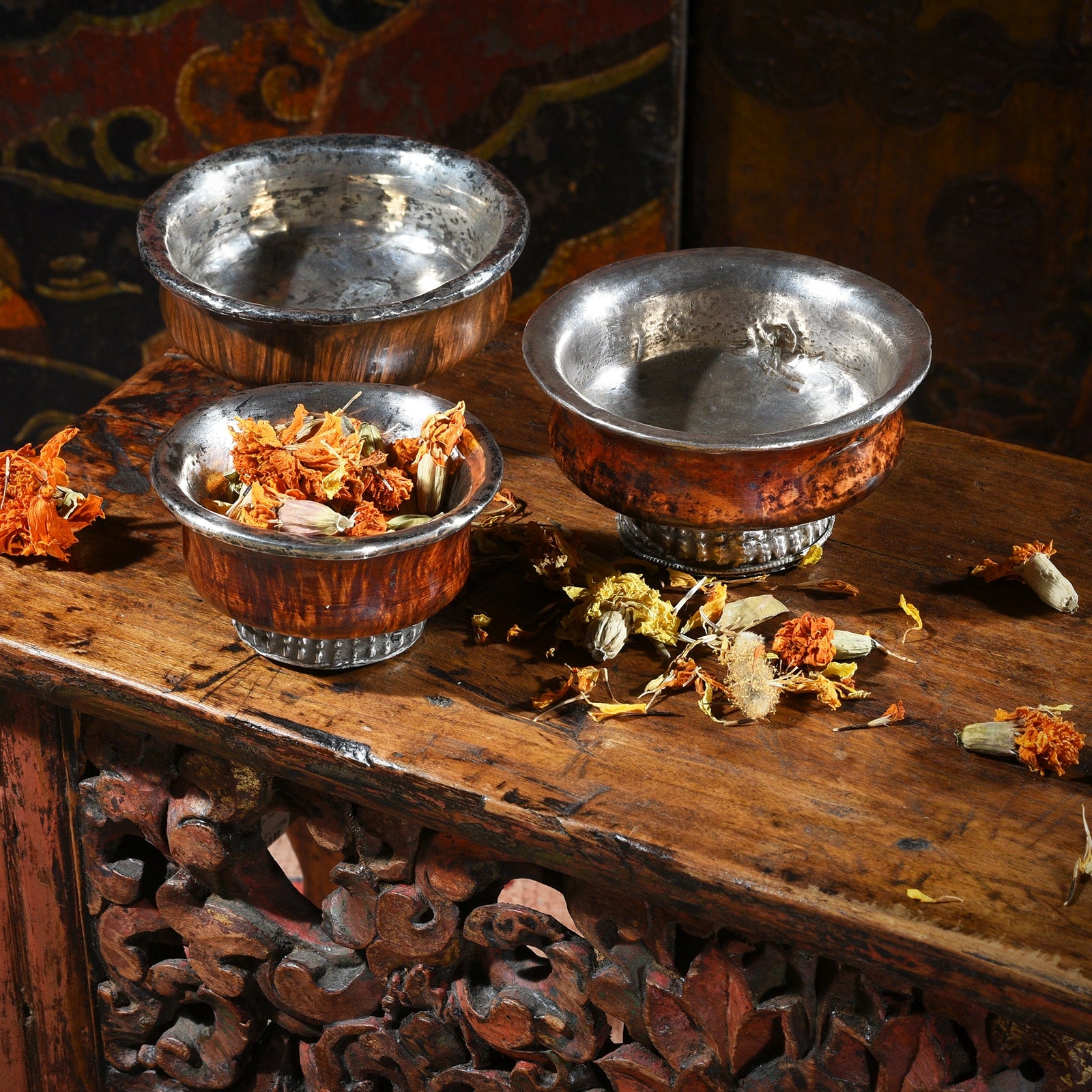 Antique Tibetan Silver & Burr Tsampa Tea Bowl Cups - Ca 1900