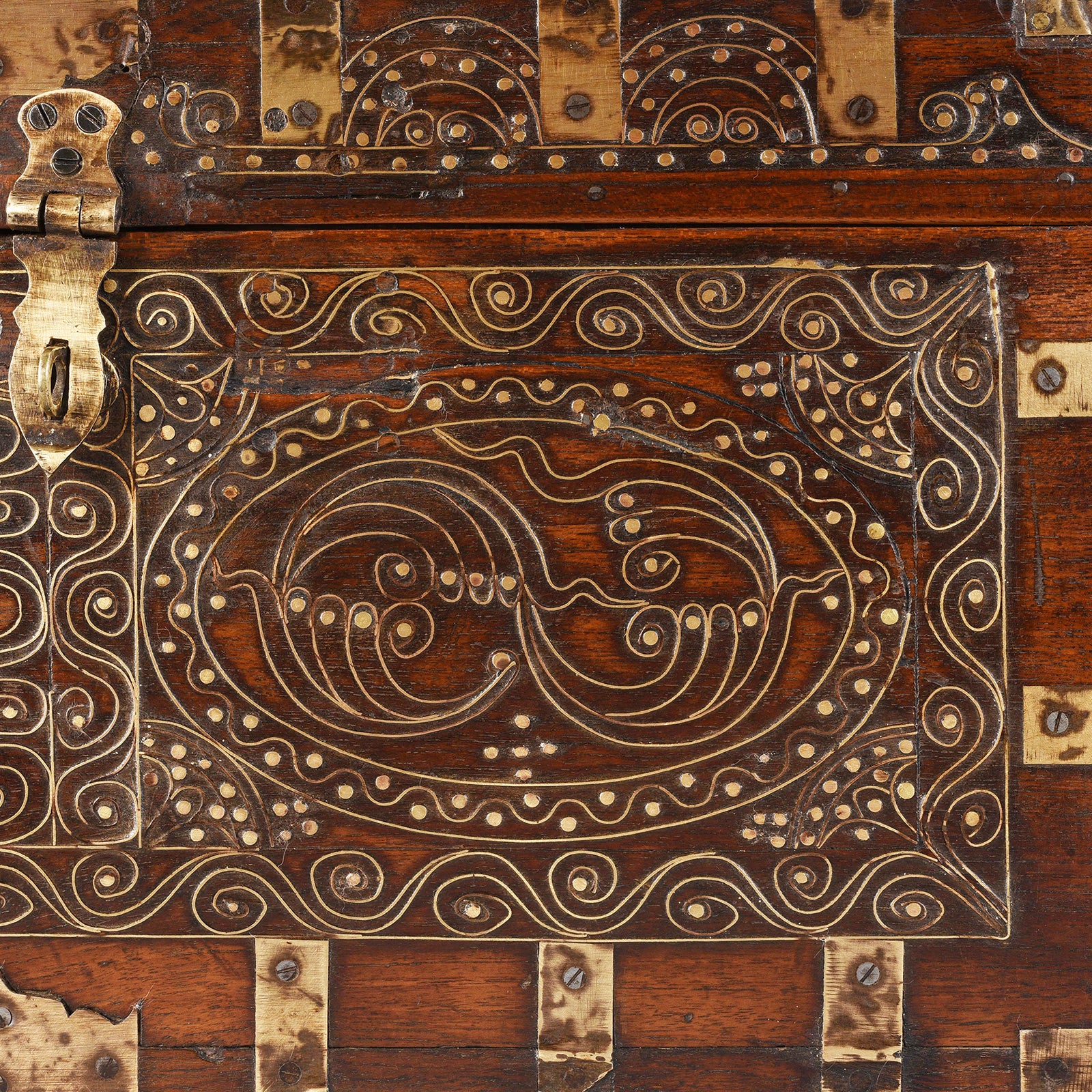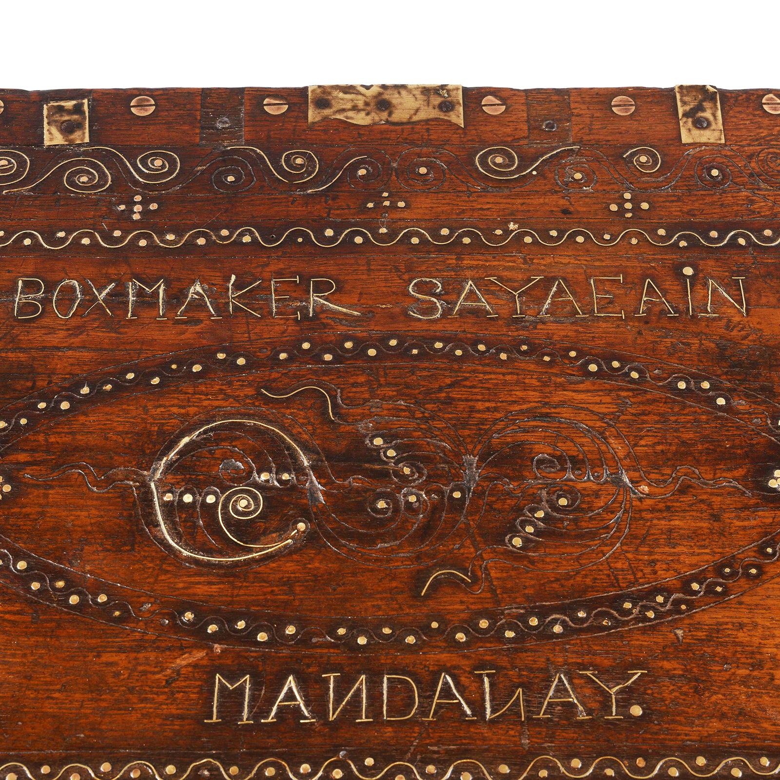 Inlay Detail From Antique Brass Bound Burmese Military Chest | Indigo Antiques