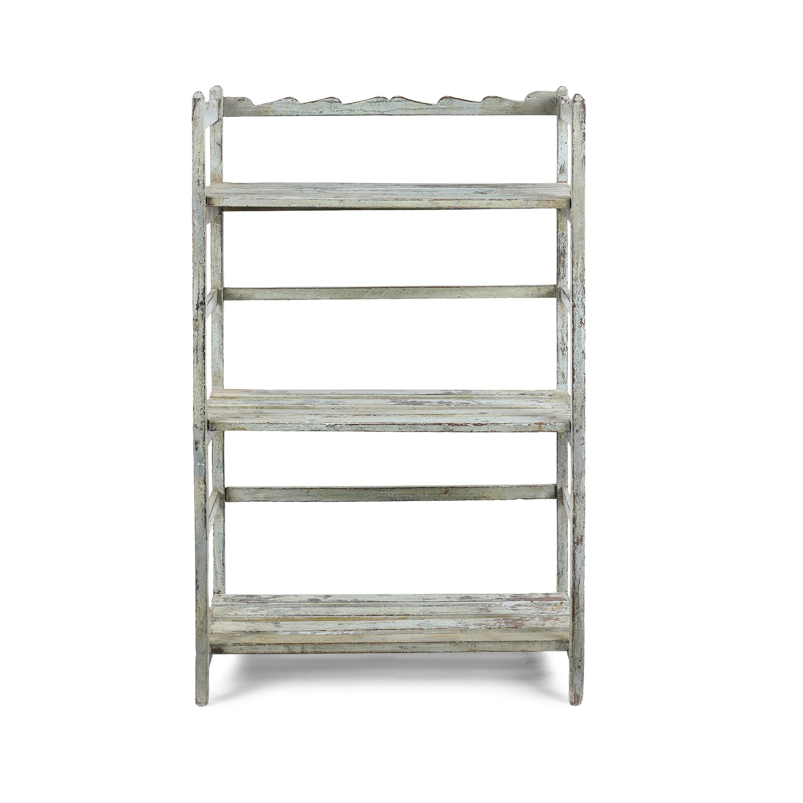 Vintage Indian Green Painted Slatted Shelf | Indigo Antiques