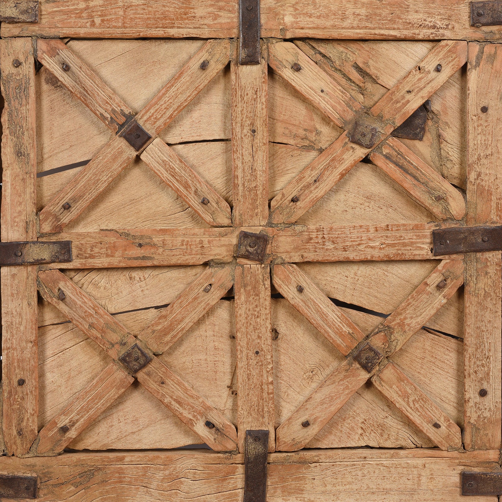Wood is very scarce in the desert & doors, window shutters and furniture were made of sticks harvested from the Kair tree (Capparis decidua). The sticks are then riveted together with iron fittings. Hung on a wall they make stunning and unique pieces of wall art.