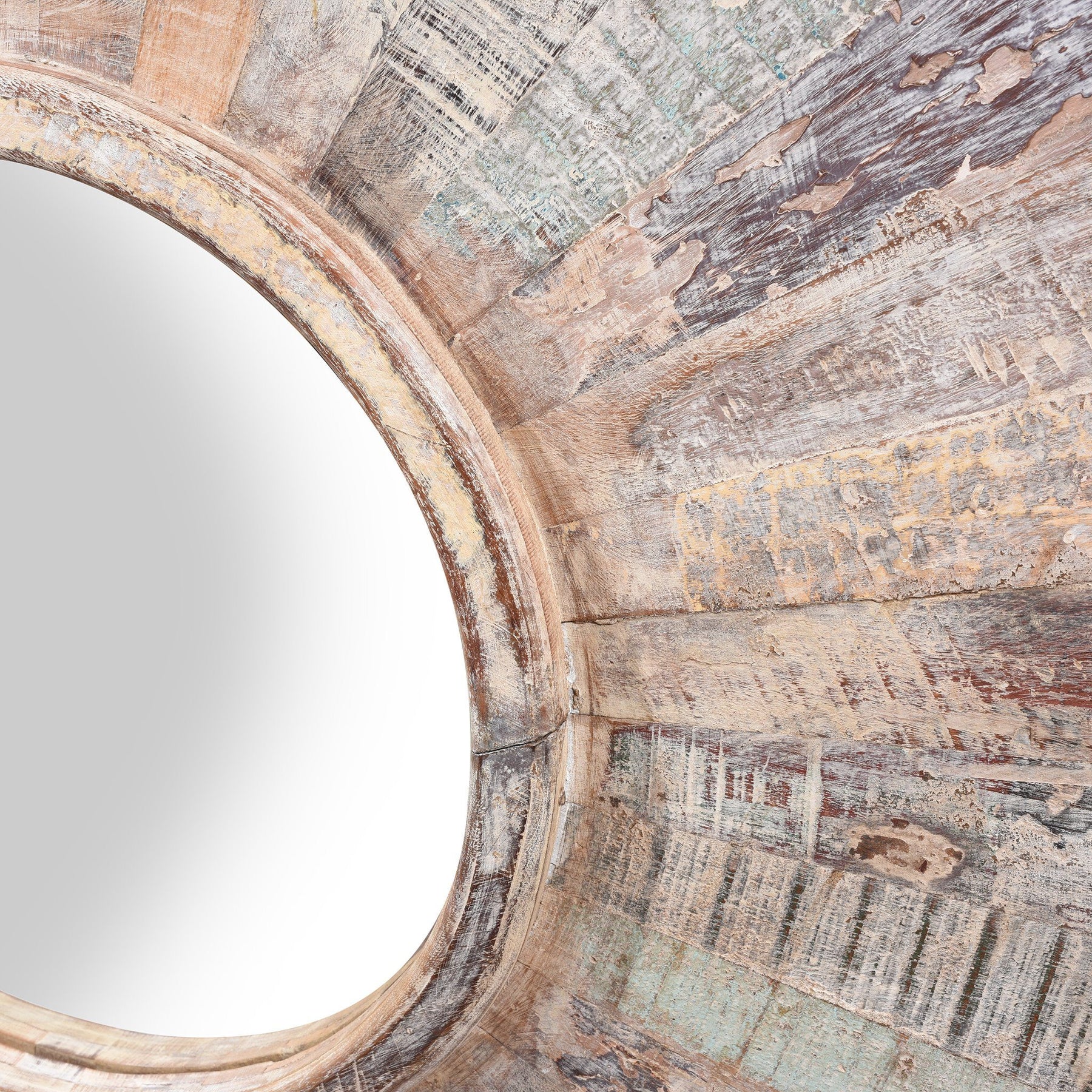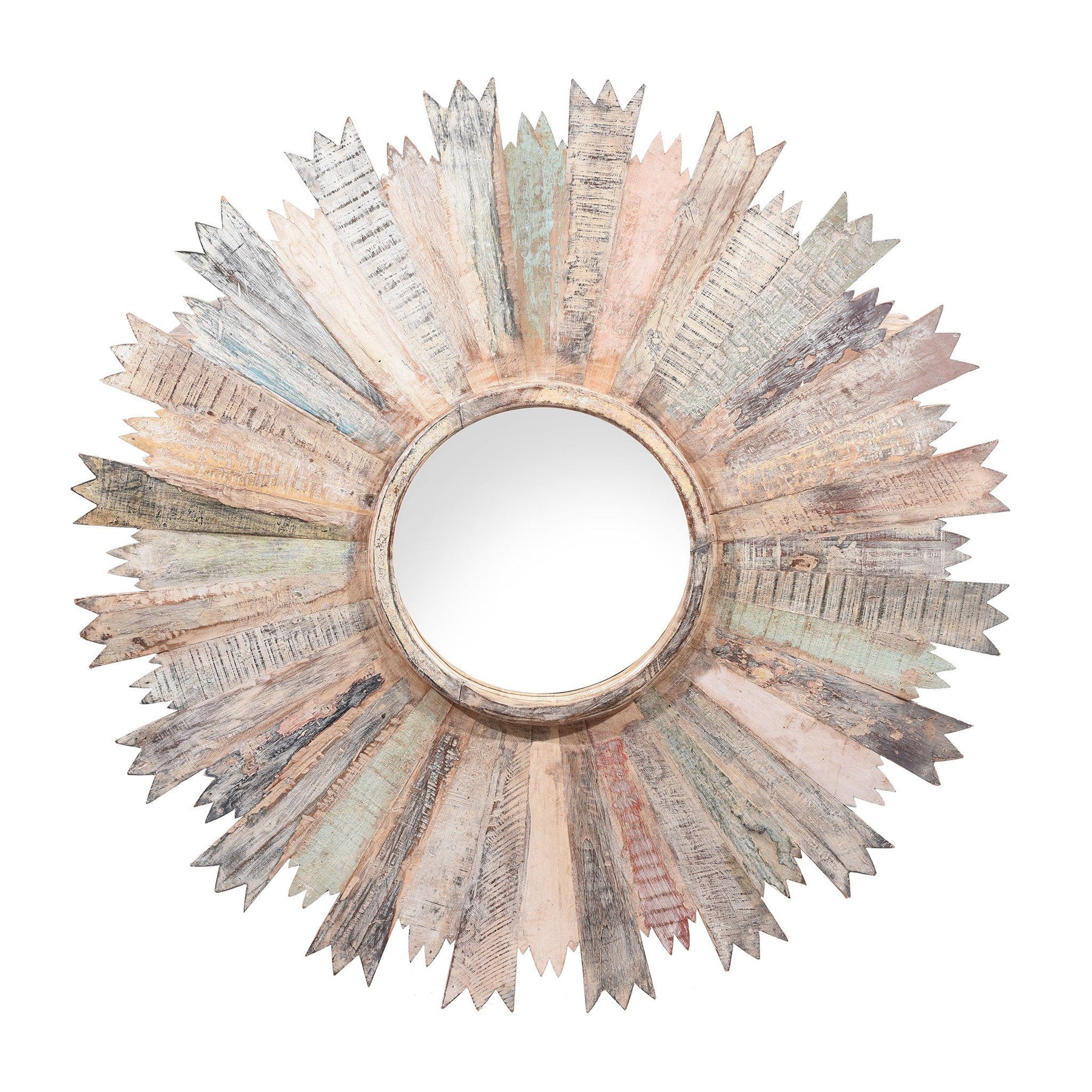 Round Sun Mirror - Reclaimed Painted Teak From Rajasthan