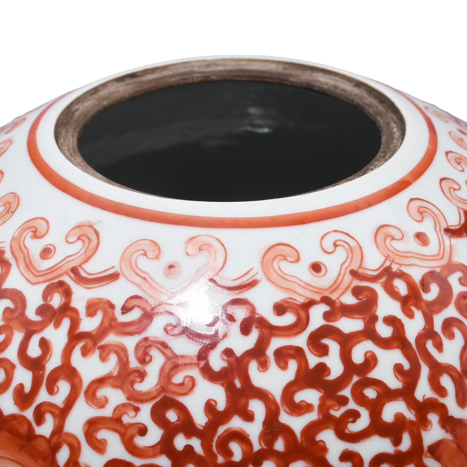 Porcelain Tall Rice Jar - Kangxi Orange Design
