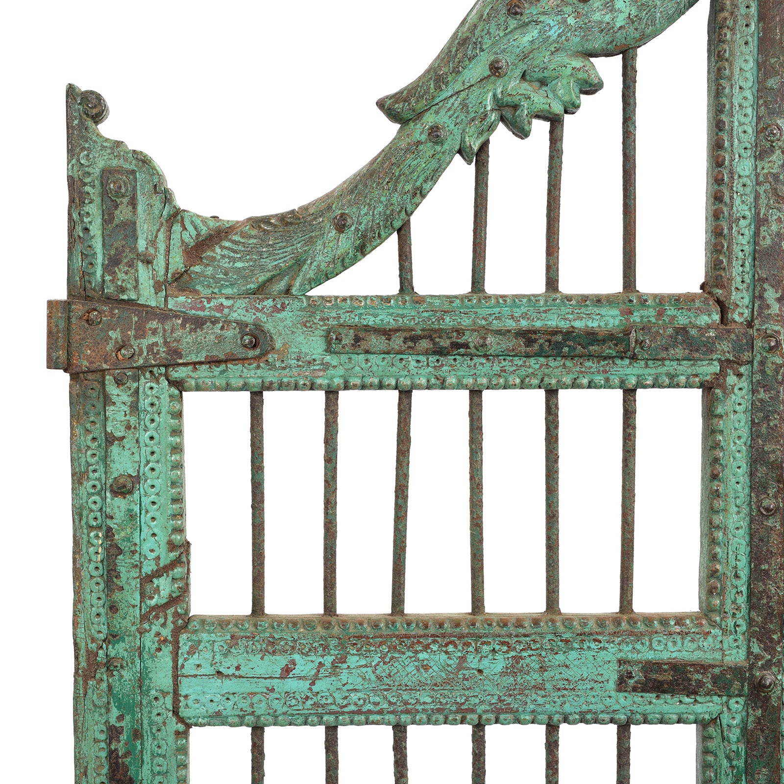 These old Indian dog gates are some of the best examples we've seen. Dating to the 19th century they're carved with decorative parrots and finished with a mint green paint patinated from years of use.