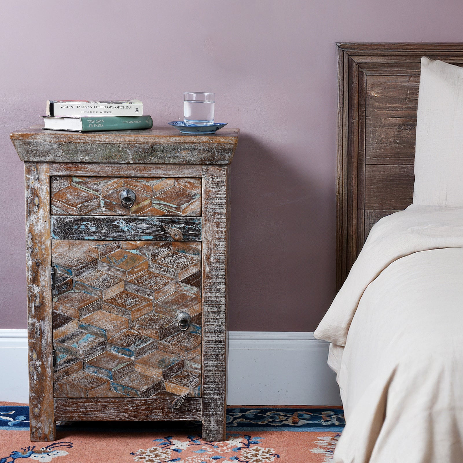 Our reclaimed wood bedside tables are made from materials that were salvaged from old buildings in Rajasthan and Gujarat. They are decorative, extremely durable and environmentally friendly.