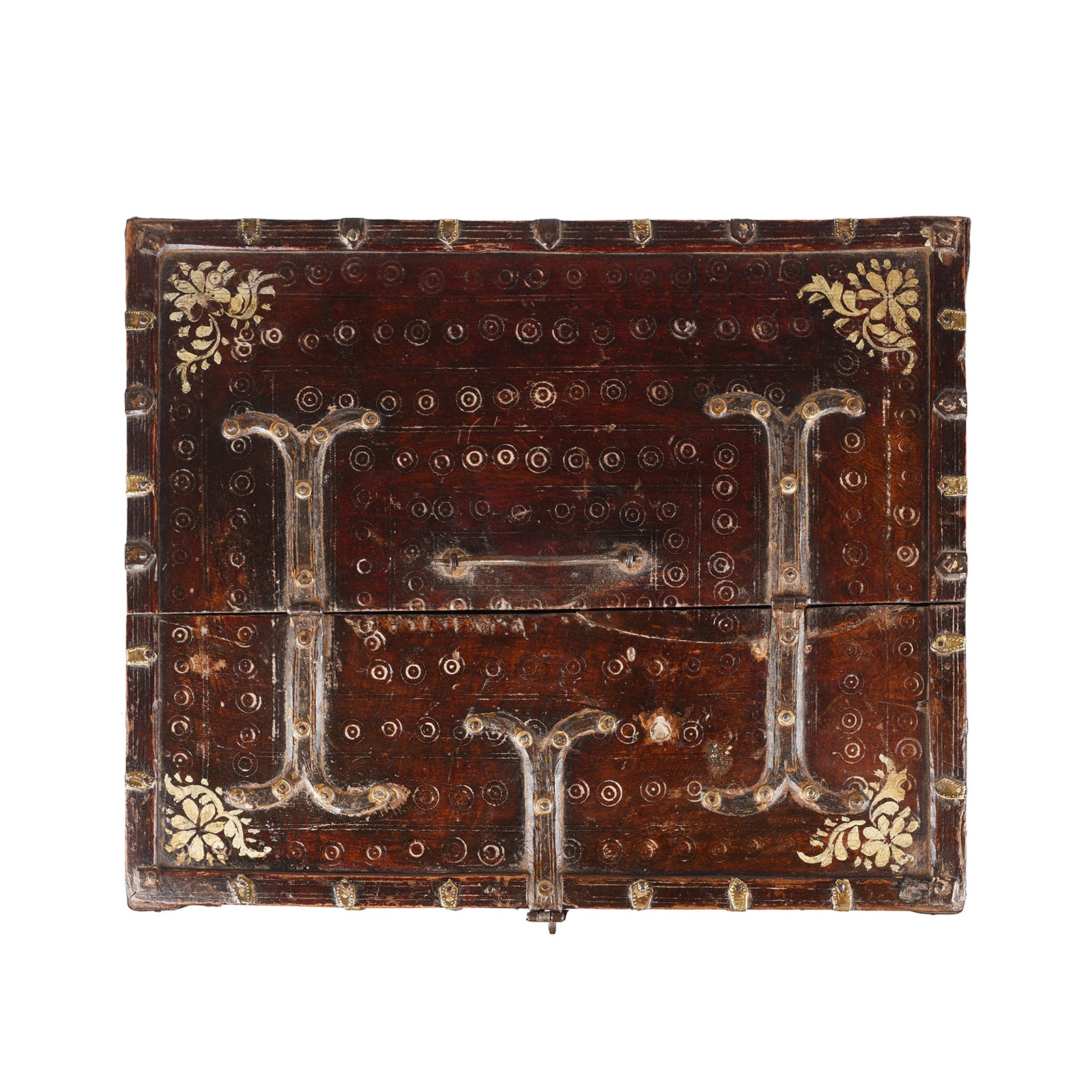 These old Indian boxes were used in the old days by merchants and traders in the bazaars for storing their cash and ledgers. They were also used by Indian families for the dowry of their daughters, as a trousseau (bridal clothes & jewellery). Locally, these boxes were called peti (casket). The body of the box is constructed from roheda wood which is bound with brass.