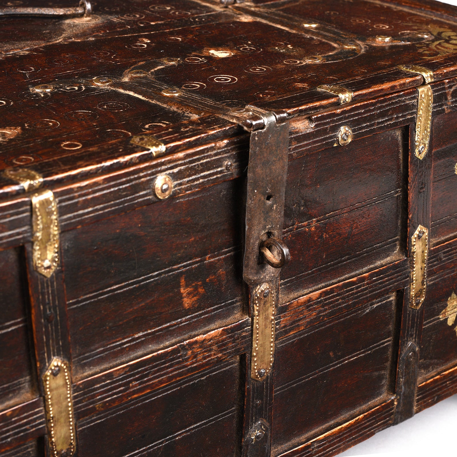 Corner Detail From Antique Teak Merchants Box From Rajasthan | Indigo Antiques